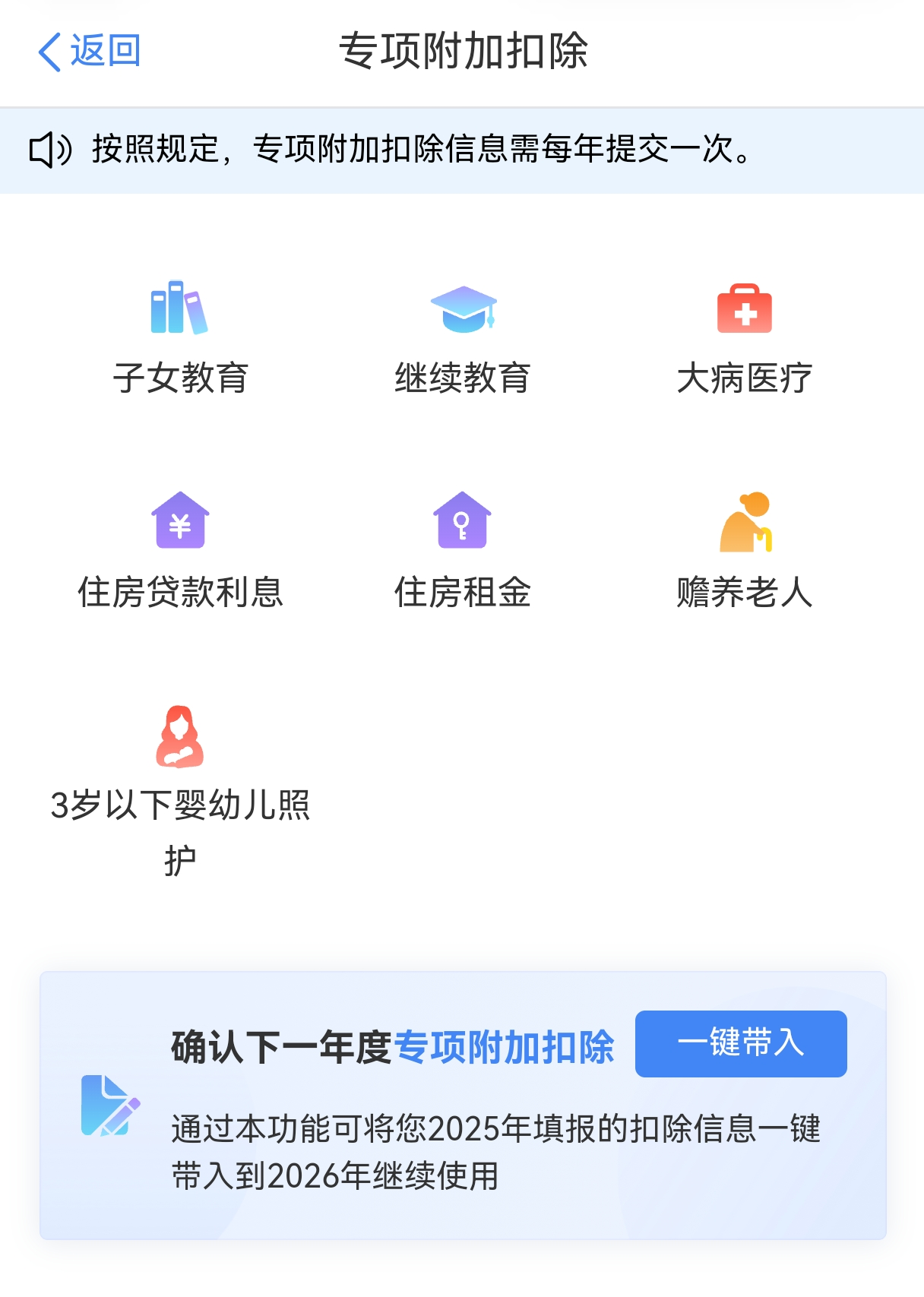 3.根据个人实际情况填报,点击填报项后选择「扣除年度」。