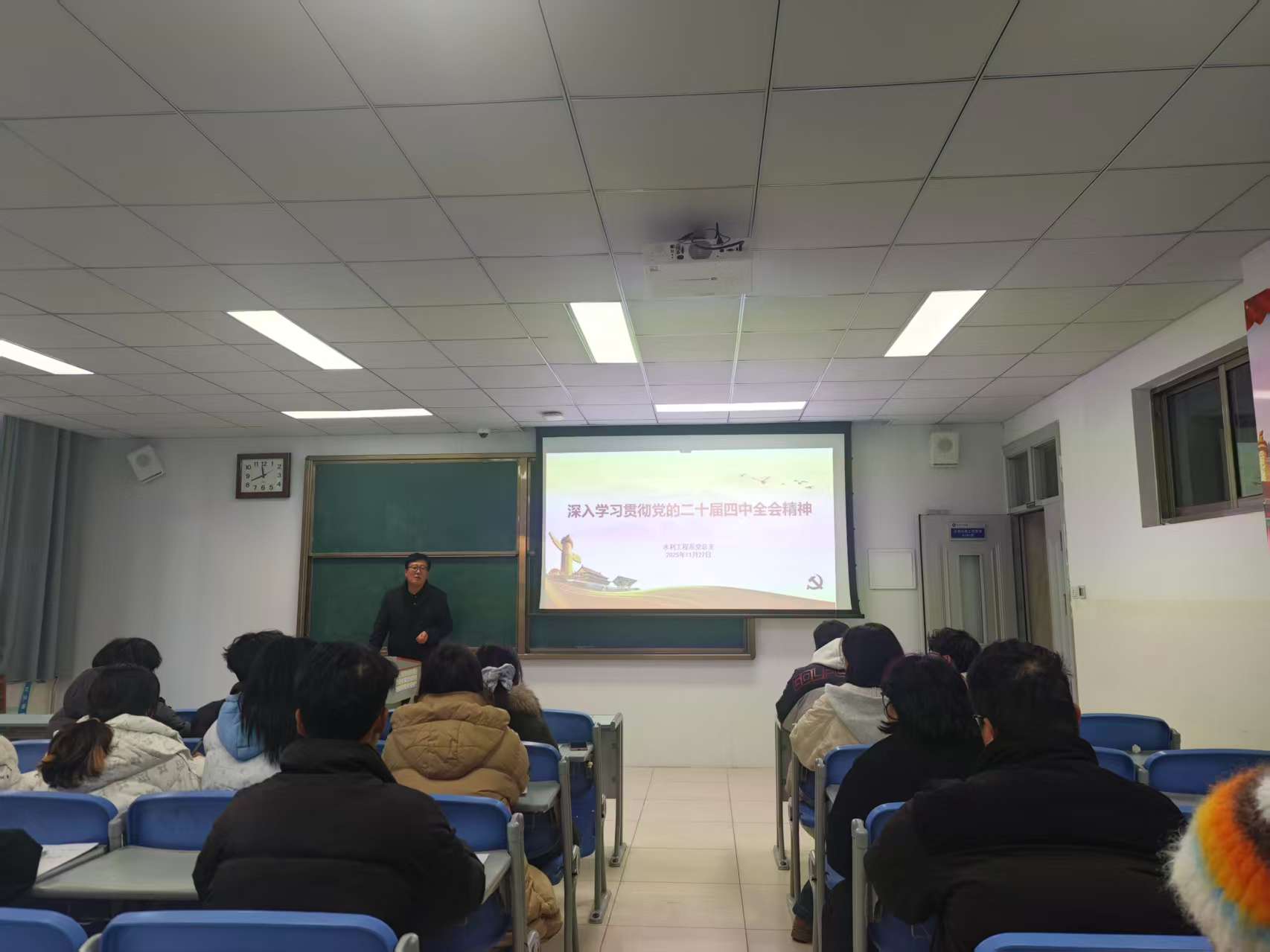 为切实加强入党积极分子队伍建设,进一步提升其思想政治素养,端正入党动机,增强政治理论水平和综合能力,水利工程系党总支于11月27日组织召开入党积极分子专题学习会。本次学习会以“深入学习贯彻党的二十届四中全会精神”为主题,2023级、2024级全体入党积极分子参加。