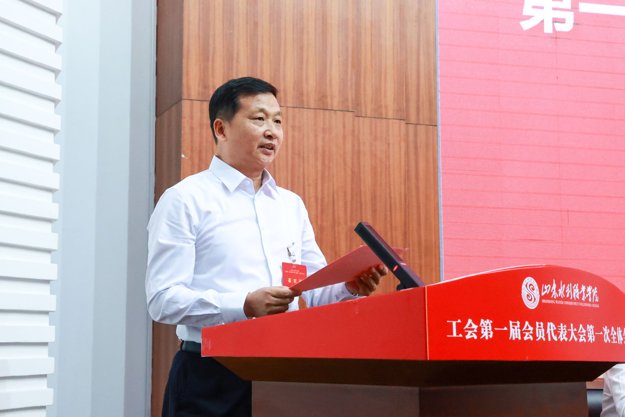 王维在致辞中指出,本次大会的召开是健全学院治理体系、深化学院民主管理的关键一步,是尊重教职工主体地位、汇聚全院智慧力量的重要体现。学院工会要团结带领全院教职工心往一处想、劲往一处使,做内涵发展的“凝聚者”;要围绕中心、服务大局,深化政校行企合作、促进产教融合,服务黄河流域生态保护和高质量发展、乡村振兴等重点领域,做服务社会的“推动者”;要面对面、心贴心、实打实解决好广大教职工最操心最忧虑的实际困难,做师生信赖的“服务者”。他强调,学院工会要充分发挥桥梁纽带作用,秉承“立足行业,适应产业,服务地方”,致力于服务水利行业和日照经济社会高质量发展,共谱“城市+大学”融合发展的新篇章!