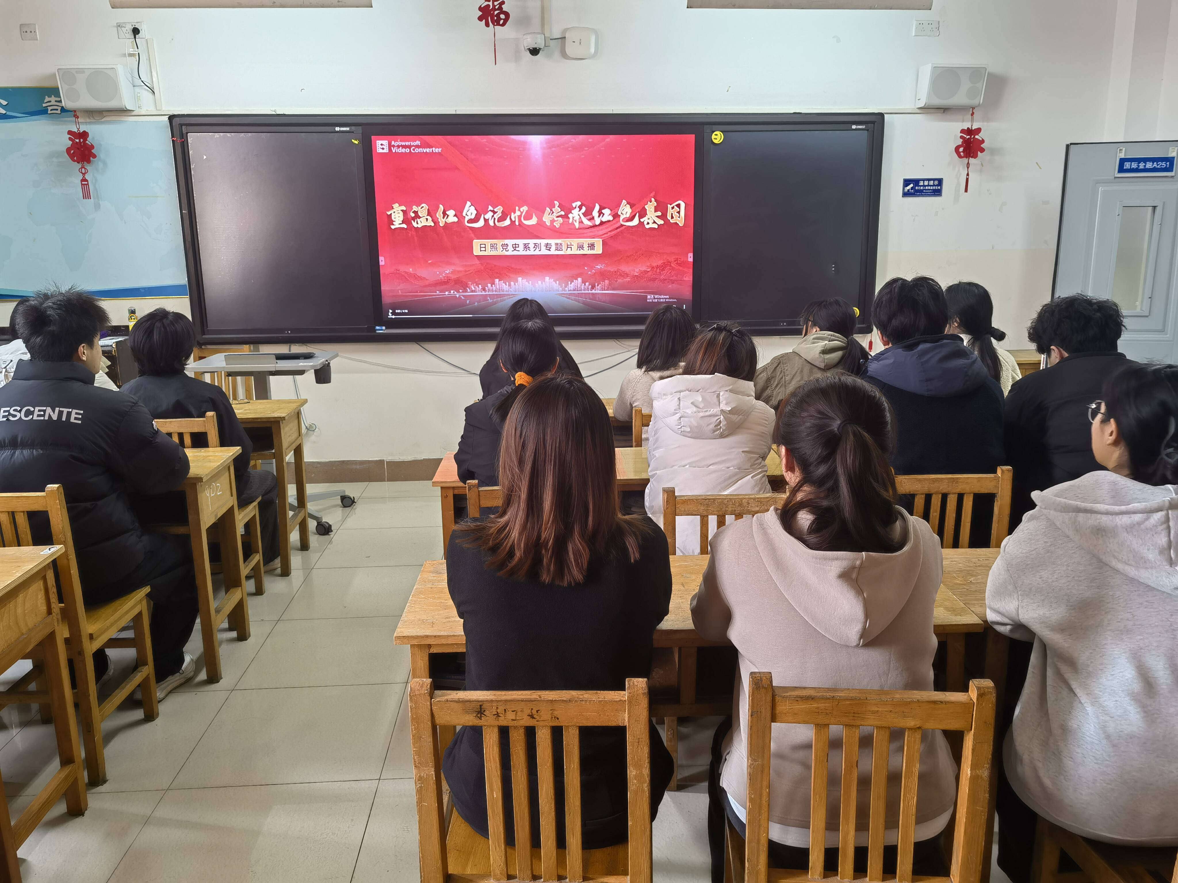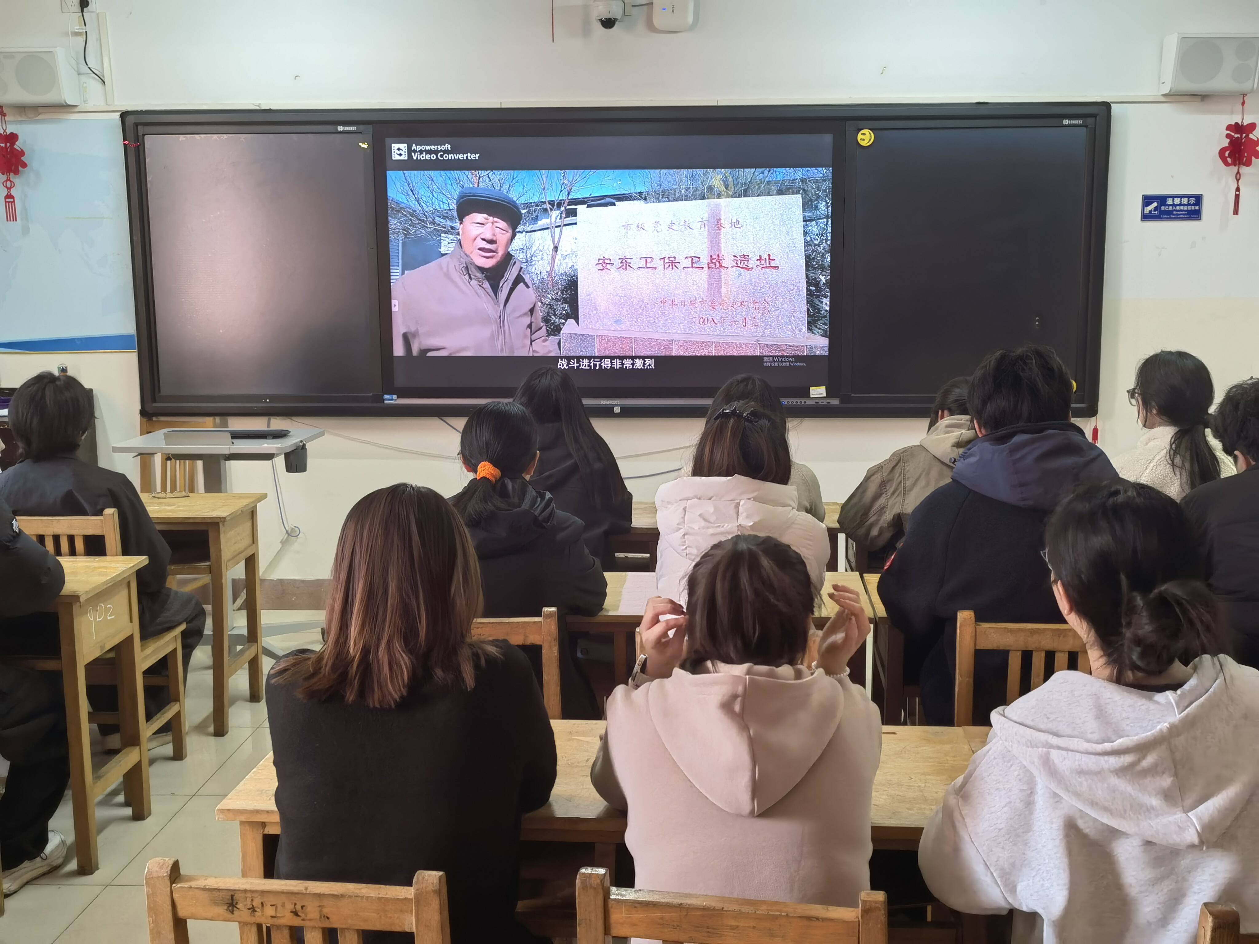 活动最后,全体学生集体观看党史专题片《安东卫保卫战》。影片真实再现了1945年安东卫保卫战中,钟家全指导员带领战士们浴血奋战、誓死抗敌,以最后一发子弹以身殉国的壮烈场景。震撼人心的画面,让同学们深受触动,进一步激发了爱国情怀与责任担当,纷纷表示要以英烈为榜样,将爱国之情转化为前行动力。