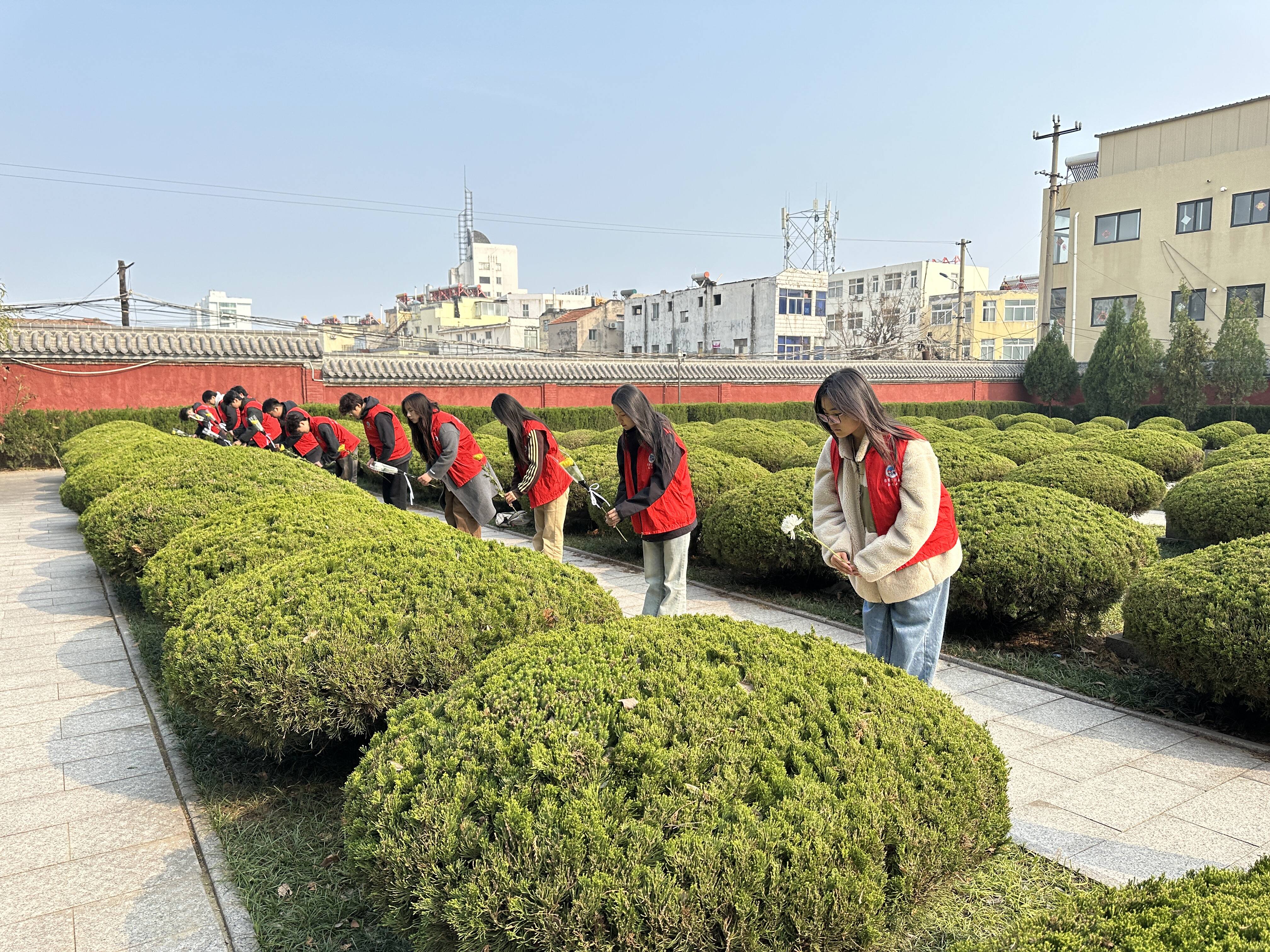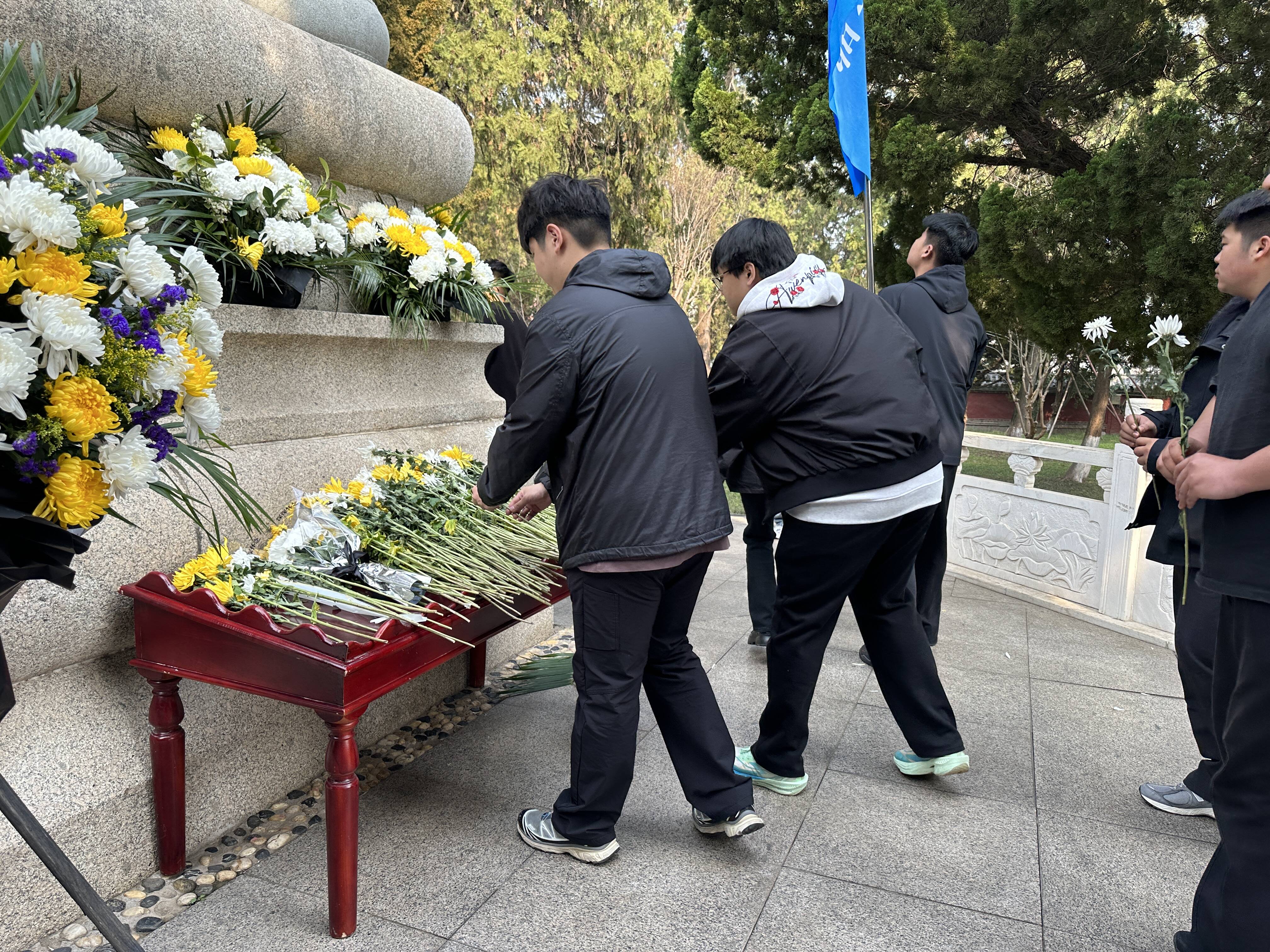 全体成员来到烈士墓碑前,开展庄重肃穆的扫墓祭奠仪式。同学们手持鲜花,缓步上前向墓碑献花,轻轻摆放于碑前,寄托对革命先烈的深切追思。随后,全体人员列队肃立、低头默哀,向为国家独立、人民幸福抛头颅洒热血的英烈们致以最崇高的敬意,在静默中铭记先烈丰功伟绩,传承其舍生取义、无私奉献的崇高品格。