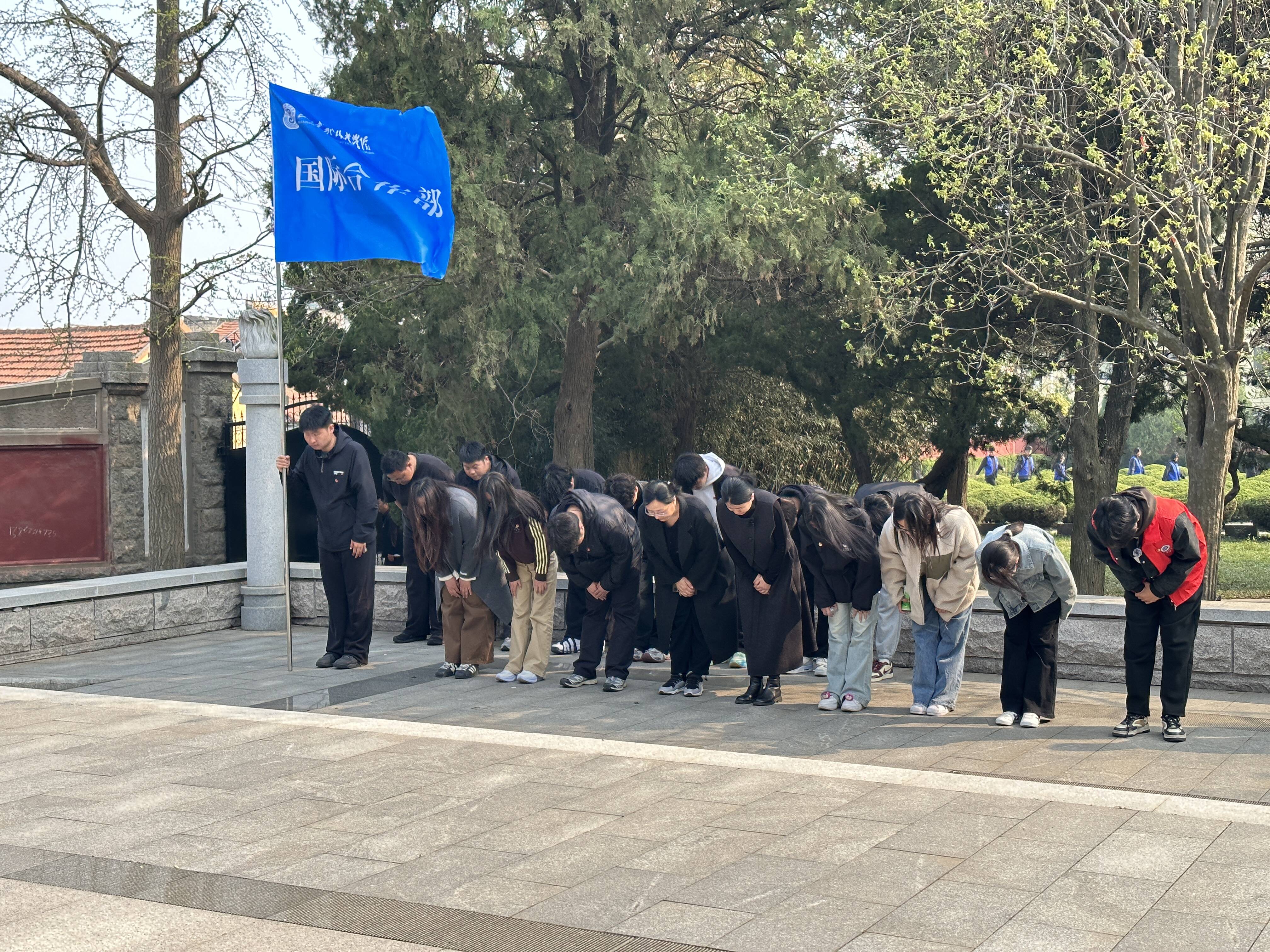 为深化爱国主义教育,让思政教育走出课堂、走进实地,清明节之际,国际合作部以“清明祭英烈,精神永流传”为主题,开展沉浸式“行走的思政课”主题教育活动。通过红色故事宣讲、纪念馆研学、烈士陵园祭奠、红色观影学习四大环节,引领青年学子追忆革命先辈、感悟英烈精神,在实践体验中厚植家国情怀,筑牢信仰根基。