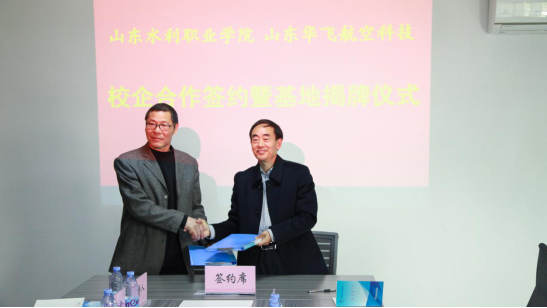 4月26日上午,我校与山东华飞航空科技有限公司举行签字揭牌仪式,共同成立“无人机应用技术实习就业基地”“无人机技术应用服务基地”。副院长王启田,山东华飞航空科技有限公司董事长李建华,机电工程系及企业相关负责人出席了仪式。