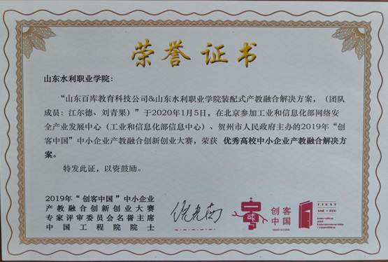 近日我校收到来自主办方的奖牌和荣誉证书,我校在2019“创客中国”中小企业产教融合创新大赛总决赛中荣获“优秀产教融合解决方案奖”。