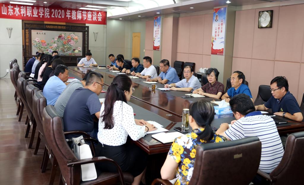9月10日上午,我校举办庆祝第36个教师节教师代表座谈会。学校领导于纪玉、王顺波、王启田、颜秀霞,部分处室负责同志、各系部主任及学校2020年“师德标兵”获得者出席座谈会。会议由副院长王顺波主持。