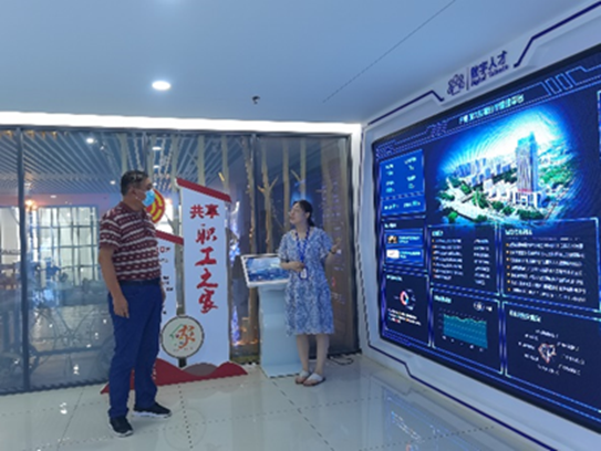 于纪玉一行先后参观了园区招聘大厅、综合服务大厅、会议中心以及展厅等区域,听取了产业园运营方负责人关于园区规划建设、功能服务、管理体制、运营模式等情况的介绍,并走访了部分入驻企业,与企业负责人进行交谈。