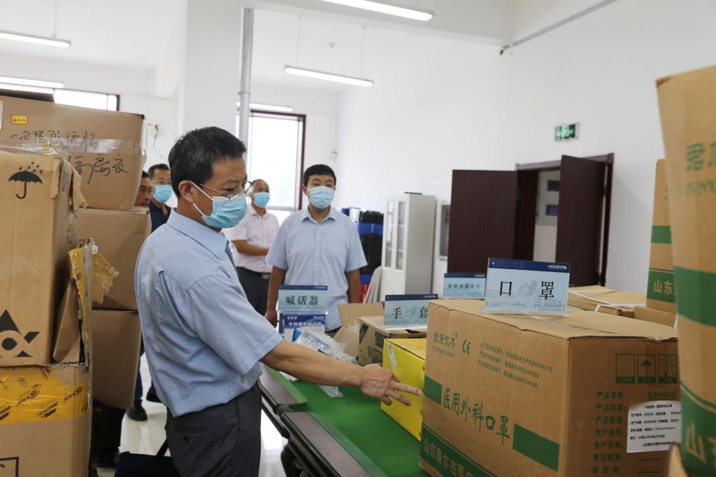 张建德一行视察了学生教室、临时留观区、防疫物资储备库、校园环境等疫情防控重点场所,实地查看了学校开学各项准备工作情况,查阅了学校疫情防控相关文件资料,重点就疫情防控各环节工作流程和应急措施作了详细了解,并观看了我校秋季开学疫情防控应急演练视频。