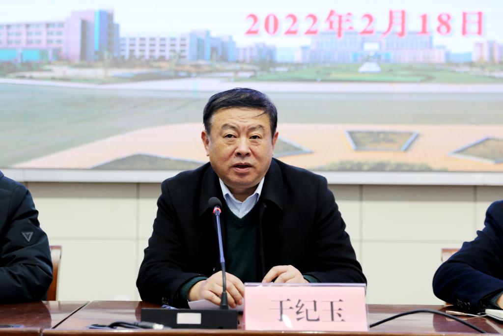 会上,于纪玉首先通报2021年度山东省办学质量考核和绩效考核情况,学校在全省高等职业院校办学质量年度考核中等次为A。紧接着,回顾2021年学校在党史学习教育、教育综合改革、教学质量、师资队伍建设、思政工作、教师及学生技能竞赛获奖、科研项目等方面取得的丰硕成绩,并对学校2022年重点工作进行部署动员。他指出,学校发展正处在关键时期,新的一年要深入学习贯彻省教育厅2022年工作动员大会精神,重点围绕“落实、谋划、治理、创新”四个关键词,谋划好党建品牌铸造、办学质量提升、体制机制改革、教师成长攻坚、学生培养提升、技能双创先锋、产教融合提质、社会服务增效、国际交流拓展、幸福水院创建等“十大攻坚行动”,始终把守正创新摆在学校发展的核心位置,紧紧依靠巩固拓展比较优势、补齐短板弱项、激发动力活力,把握重点、聚力攻坚,努力开创学校高质量发展新局面。