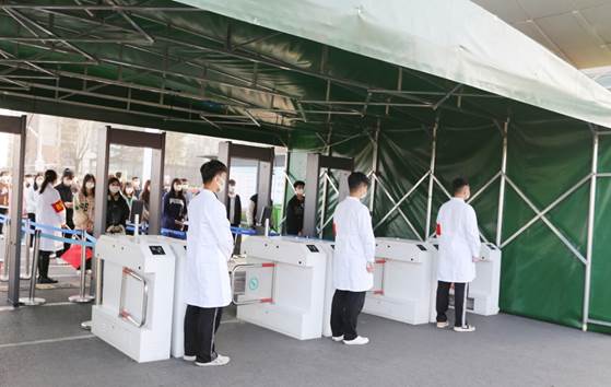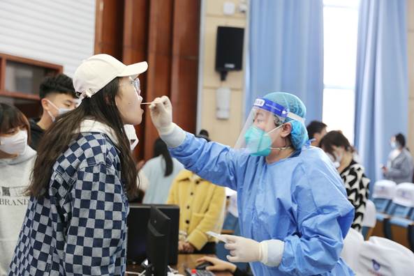 应检尽检,筛查潜在风险隐患。学校成立专人专班负责组织学校师生核酸检测工作,联合定点医院开展两轮全员核酸检测,连续两周对不低于20%的在校生进行抽检,要求全体教职工、后勤服务人员、校企合作人员、校外施工人员等100%每天进行检测。对于全员核酸检测期间漏检人员一律安排补测。
