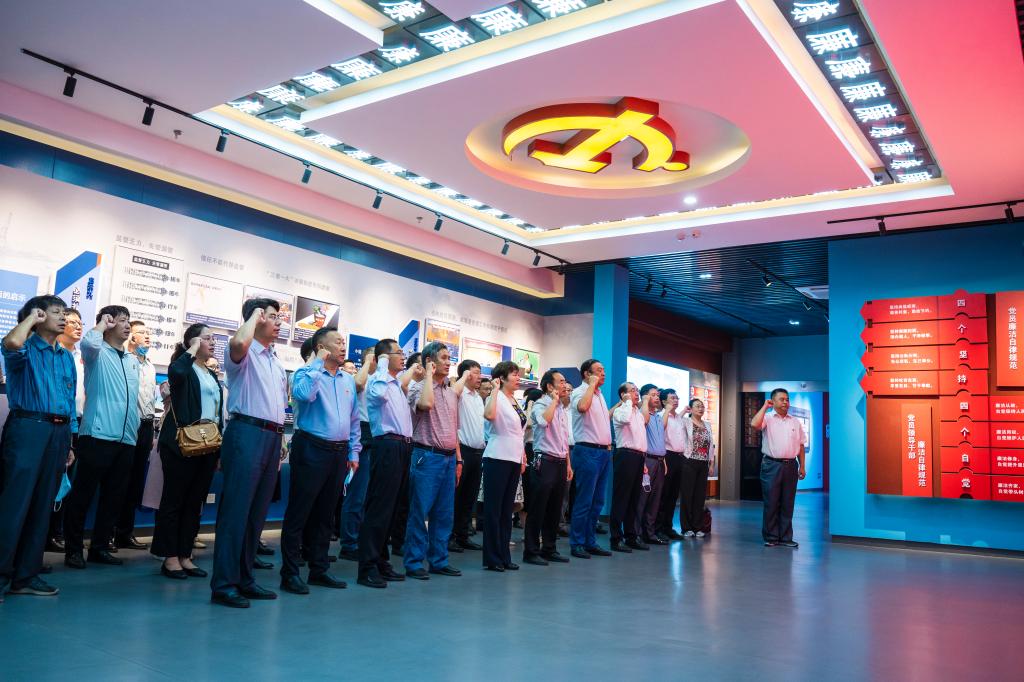在警示教育馆讲解员的带领下,领导干部参观了“塌方式腐败”险些坏了一座港、难逃法网的港口“蛀虫”、发人深省的案例启示等展厅,认真观看了展厅内每一块展板和《不负人民》《不负人生》等宣传视频。一个个活生生的腐败案例和忏悔实录,发人深省,令人震撼,警醒领导干部时刻紧绷廉洁自律这根弦,时时处处做到自重、自省、自警、自励。最后,全体领导干部面对党旗,重温入党誓词。