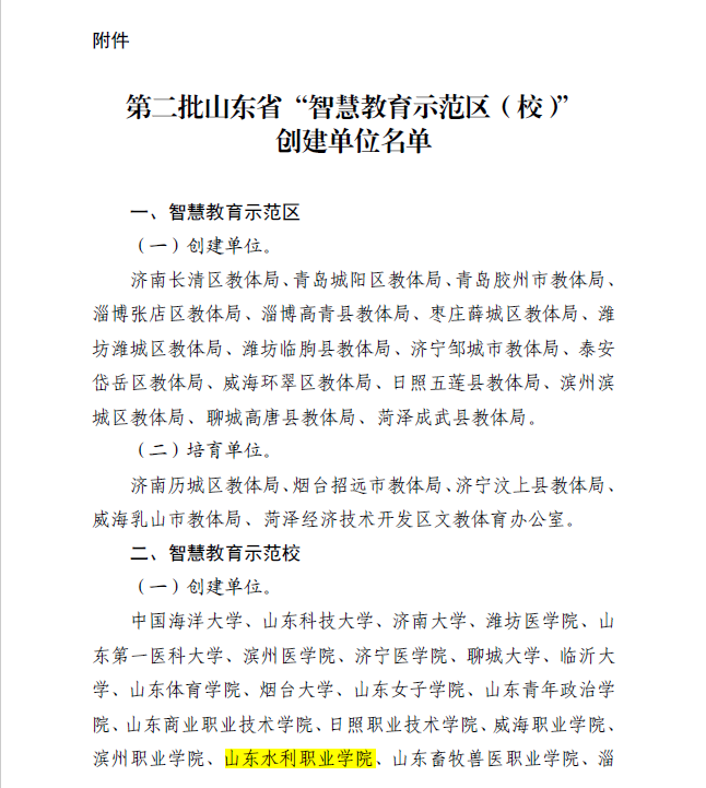11月17日,山东省教育厅发布《关于公布第二批山东省“智慧教育示范区(校)”创建单位名单的通知》(鲁教科函〔2022〕70号),确定了第二批山东省智慧教育示范校创建单位25个、培育单位6个。我校成功入选山东省“智慧教育示范校”创建单位。