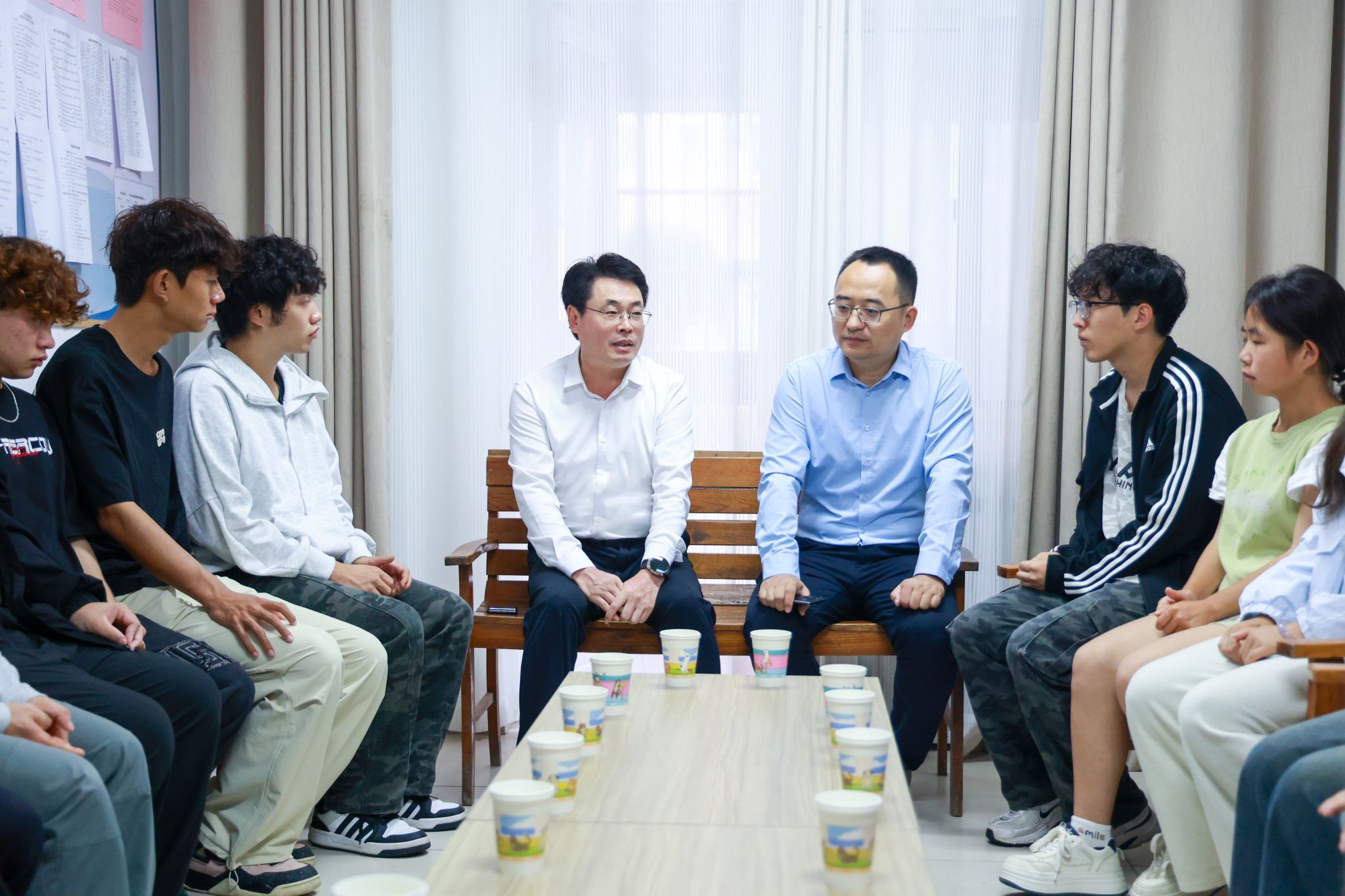 在学生公寓值班室,王维与值班学生工作干部亲切交谈,详细询问假期值守安排、学生管理服务及应急保障等情况,对他们坚守育人一线的奉献精神表示赞扬。王维强调,学生工作干部是校园安全稳定的“守护者”,也是留校学生的“贴心人”,要始终秉持“时时放心不下”的责任感,精准掌握学生动态,及时回应需求,用细致服务筑牢校园安全防线。