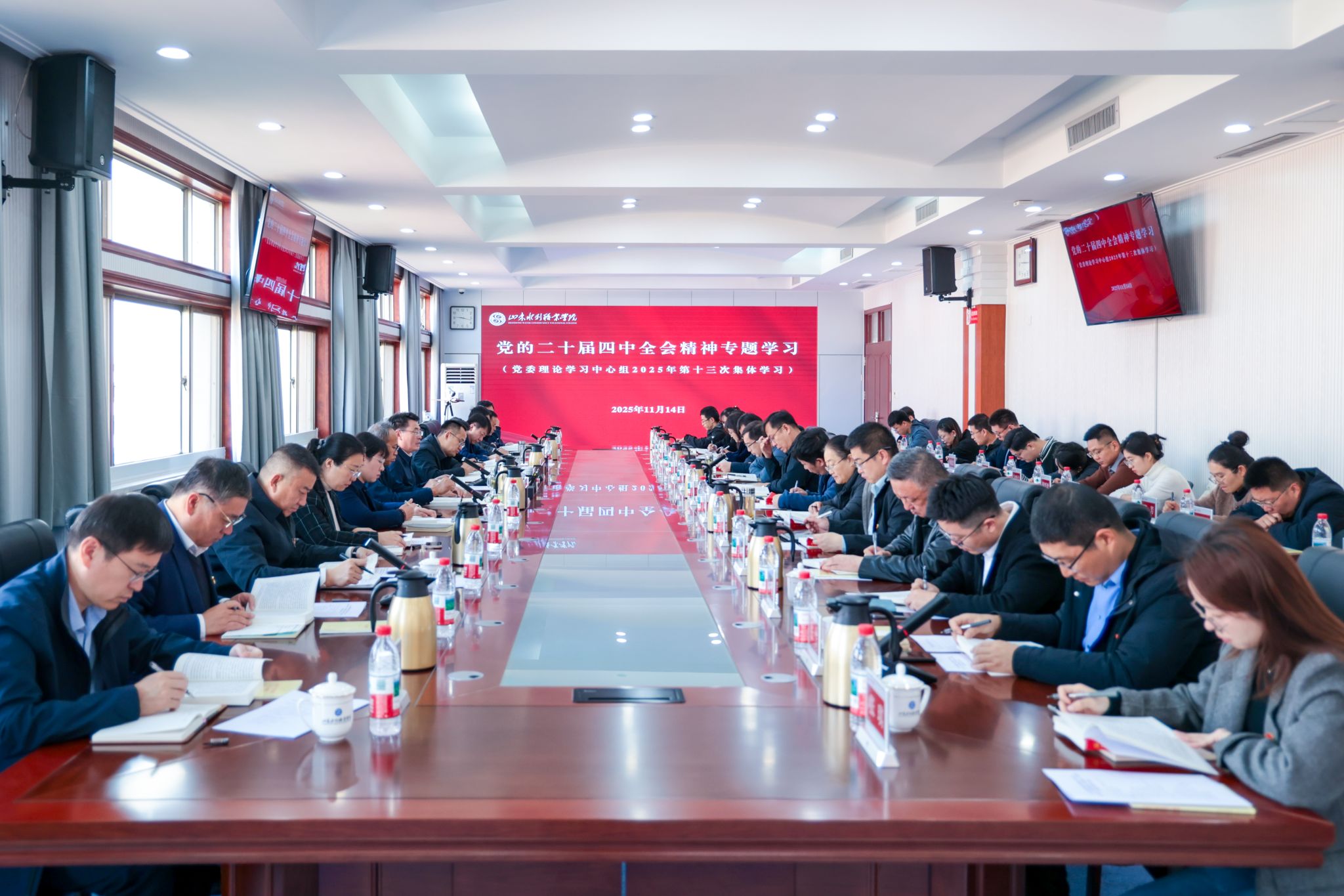 11月14日,学院党委理论学习中心组开展第十三次集体学习,专题学习党的二十届四中全会精神。党委书记王维主持会议并讲话。党委理论学习中心组成员,各部门、系部主要负责人及青年干部代表参加学习。