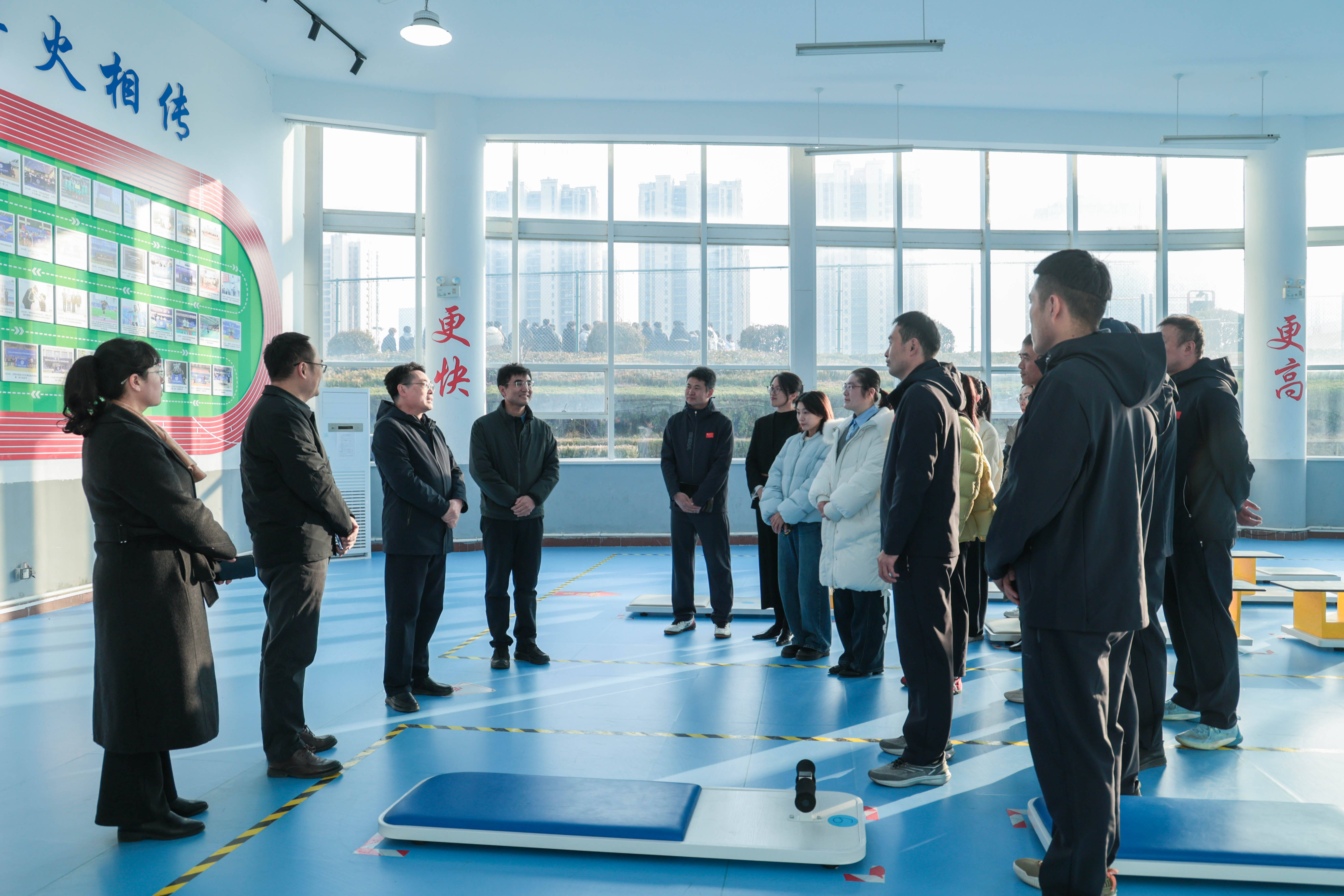 仪式现场,师生代表进行了50米跑、立定跳远、坐位体前屈、仰卧起坐等项目的智能化测试演示,基础教学部相关教师对设备后台系统作详细讲解,全面展示了中心高效、精准的测试功能。随后,大家一同参观了中心的体育文化墙。该文化墙系统梳理了学院自2001年至今近25年的体育发展历程与重要荣誉,不仅承载着一代代师生砥砺奋进的拼搏记忆,更生动诠释了“脚步不停 薪火相传”的学院体育精神。