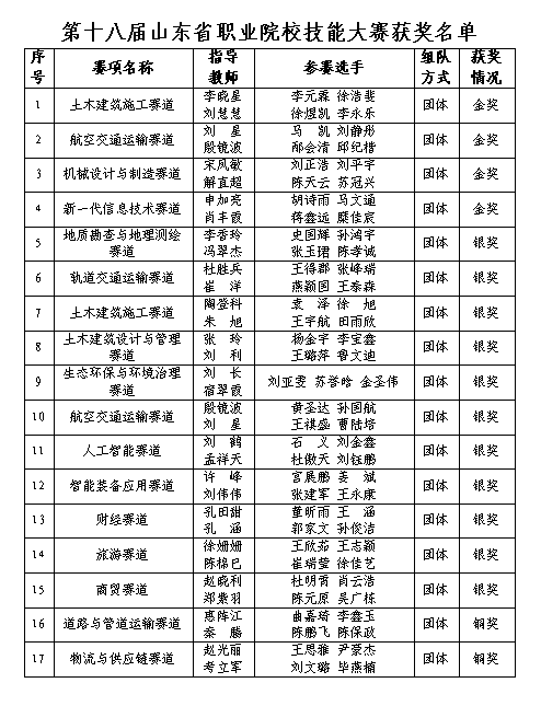近日,第十八届山东省职业院校技能大赛落幕。学院参赛学子表现卓越,斩获金奖4项、银奖11项、铜奖2项。这一优异成绩不仅充分彰显了学院在高技能人才培养领域的丰硕成果,更生动展现了师生锐意进取、追求卓越的精神风貌。