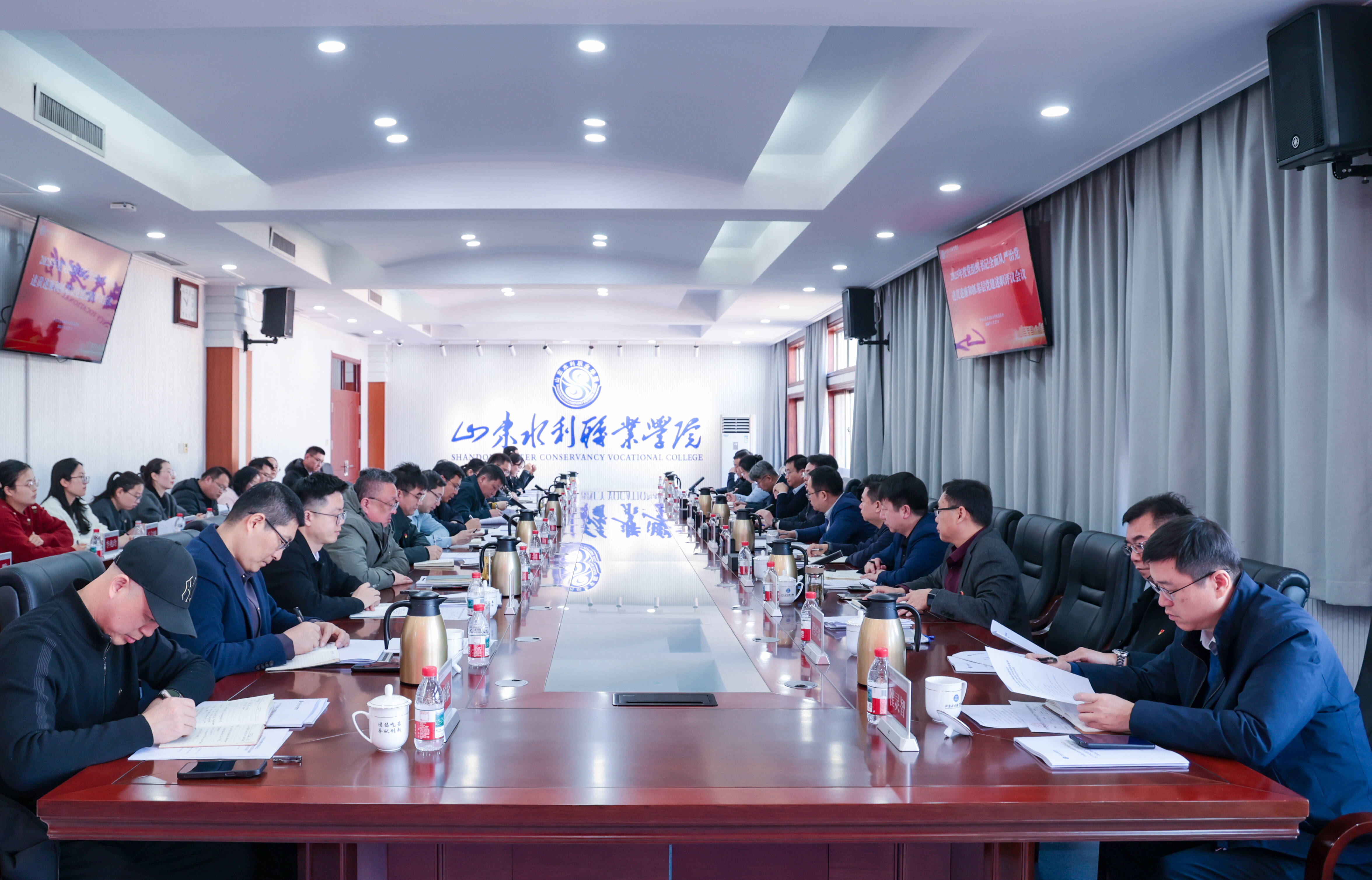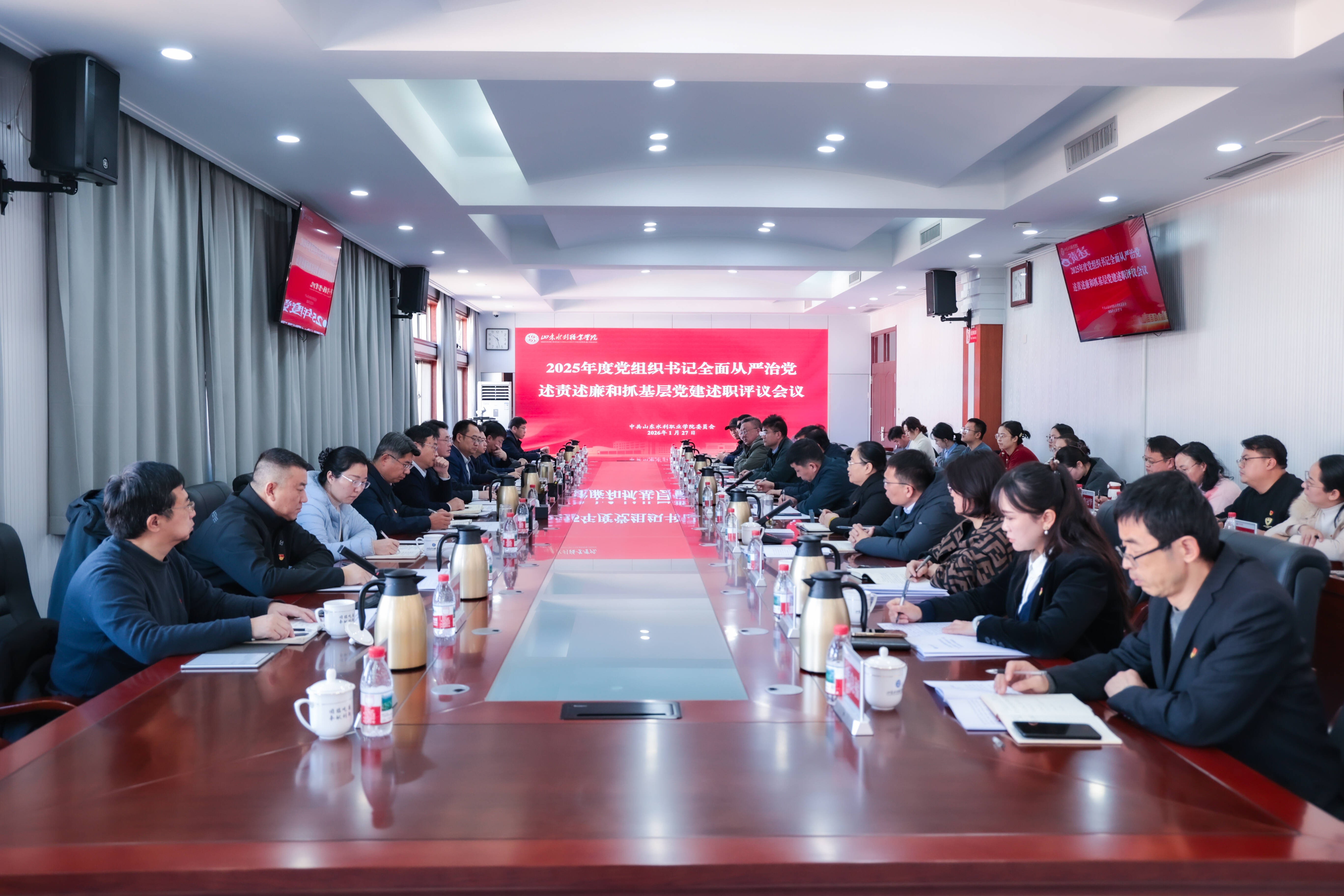 1月27日,学院召开2025年度党组织书记全面从严治党述责述廉和抓基层党建述职评议会议。党委书记王维主持会议并作点评讲话。党委领导班子成员林艳斌、杜守建、张原生、孔锋出席会议。