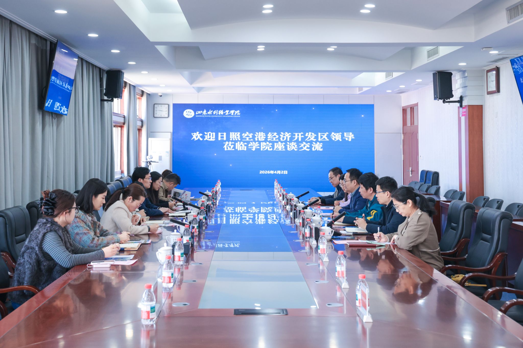 为进一步深化政校企合作,推进产教深度融合、校企协同育人,拓宽学生实习就业渠道,助力区域产业高质量发展,4月2日,日照空港经济开发区党工委委员、管委会副主任赵岩一行,携日照空港新区开发投资有限公司、山东凌越智能科技有限公司、山东多亿电子科技有限公司等企业相关负责人,来校开展政校企合作座谈交流。学院党委委员、副院长林艳斌出席座谈会,招生就业处、信息工程系、产教融合发展中心(创新创业学院)等部门相关负责人参加座谈。