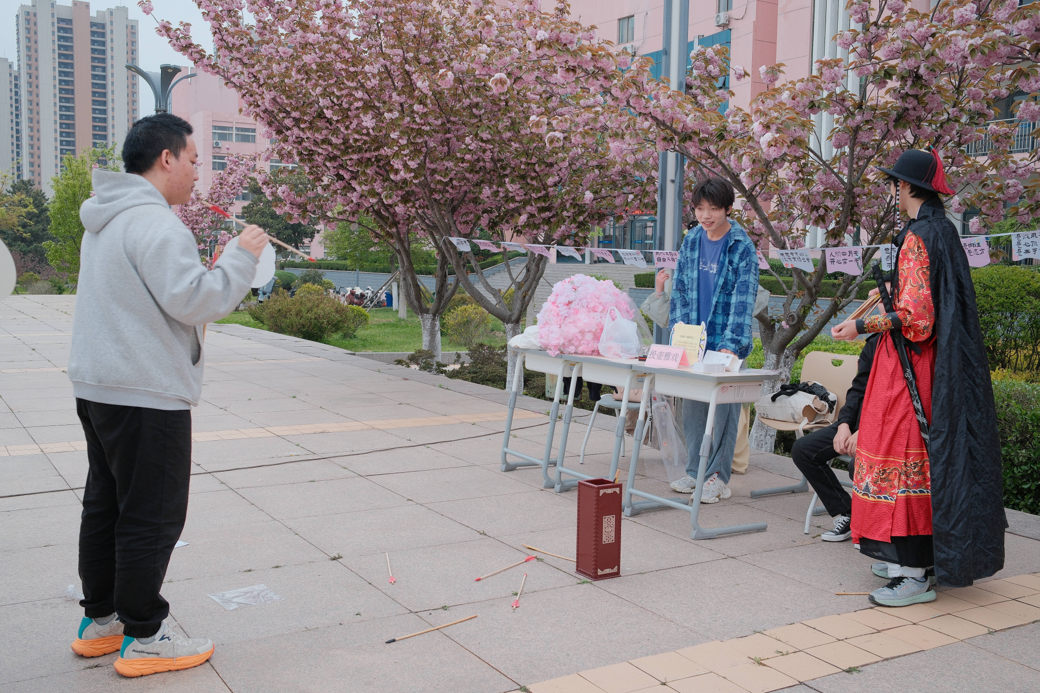 随后,郭芹宣布活动正式启动,现场多元互动环节随即开启。“诗词飞花令”“投壶雅趣”等传统互动活动,让师生在轻松愉悦的氛围中,感受中华诗词的韵律之美、传统礼仪的雅致之韵;非遗手作体验、图书借还专区、数字资源咨询台等服务,精准对接师生需求,搭建起沉浸式阅读与文化体验平台,让大家在体验中感悟文化魅力。与此同时,街舞、古典舞、汉服秀、动漫cosplay等表演轮番上演,青春潮流与传统文化碰撞出别样火花,将现场氛围一次次推向高潮。