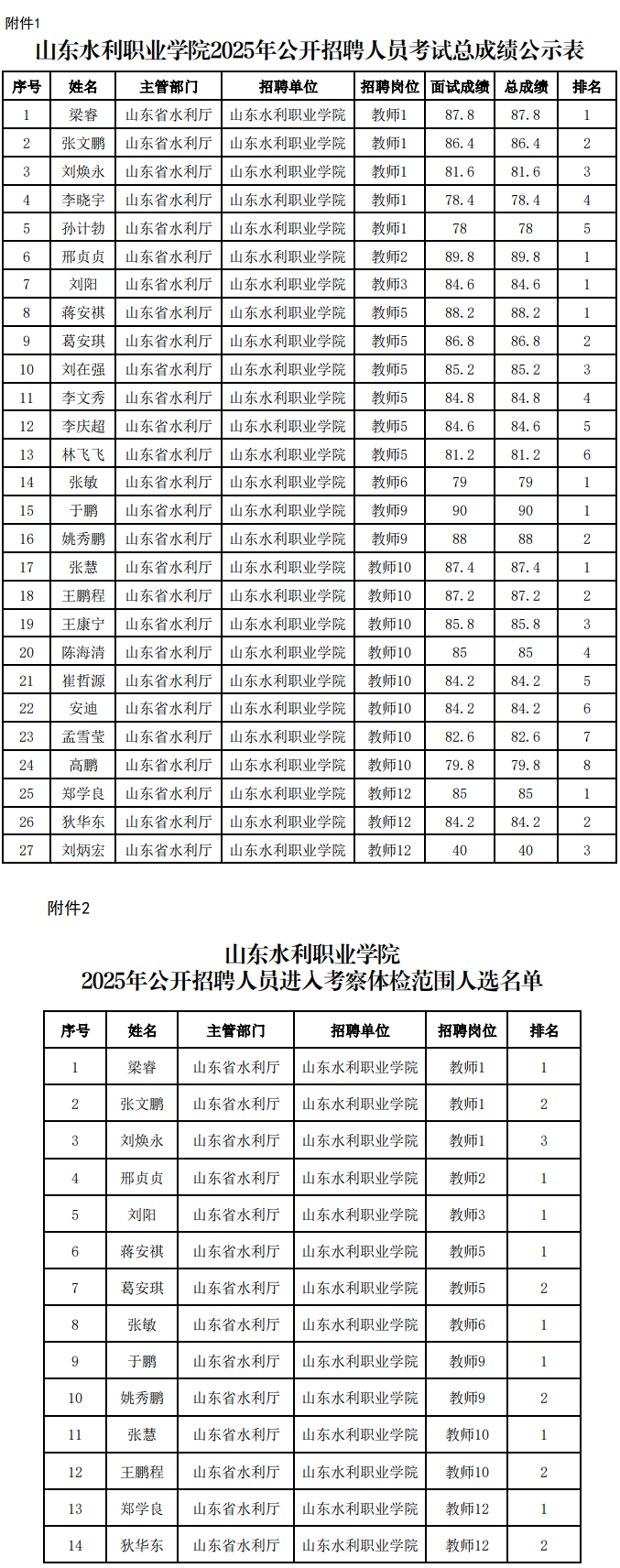 附件:1.山东水利职业学院2025年公开招聘人员考试总成绩公示