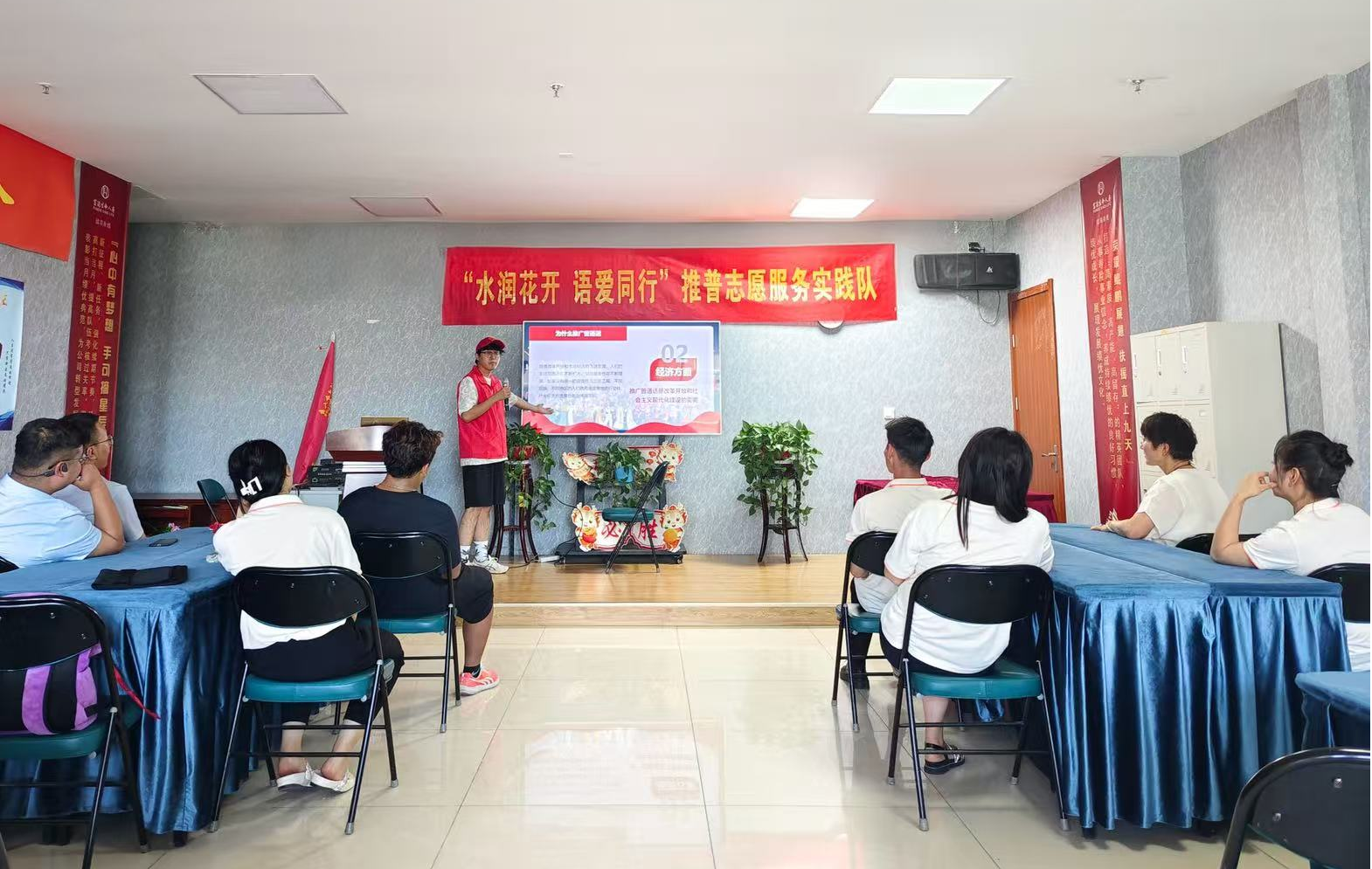 专业赋能,水语相融显特色。团队创新性地将“专业+推普”深度融合:开设“水利知识小课堂”,用普通话讲解节水灌溉、小型水利设施维护、水环境保护等实用知识,在普及水利科技的同时强化普通话应用。同时深入调研过程中,搜集方言中与水利相关的词汇表达,比如方言中对 “水渠”“水泵”等的特殊称呼,对比分析其与普通话的差异,并将这些内容融入到推普课程中。丰富推普内容,使语言推广更接地气、更具实用性,让村民们在学习普通话的同时,也能更好地理解和交流水利相关知识。