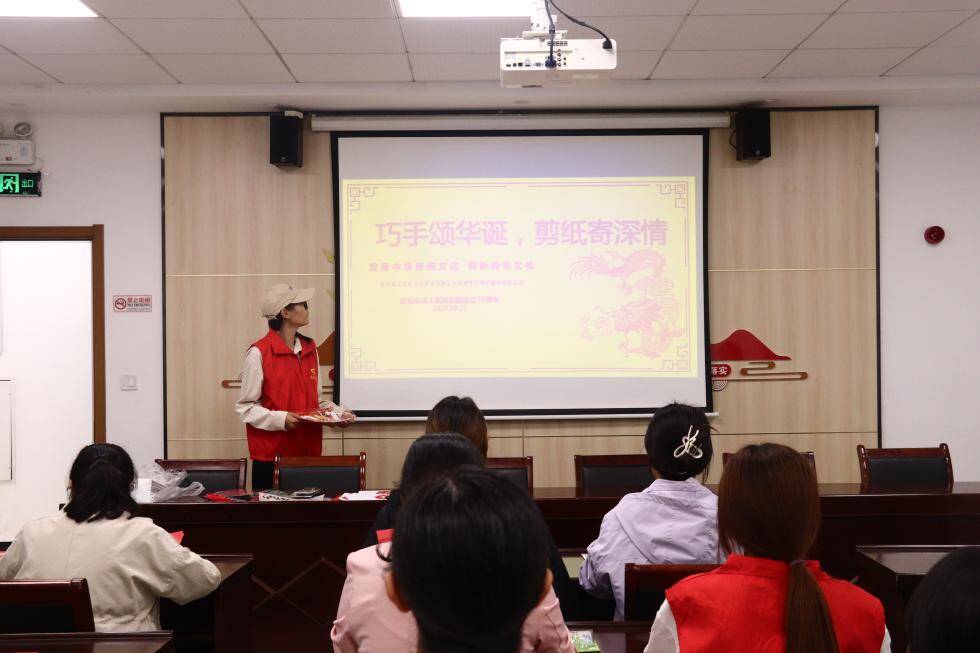 为庆祝中华人民共和国成立76周年,弘扬中华优秀传统文化,9月25日,信息工程系师生走进北京路社区,举办“巧手颂华诞,剪纸寄深情”国庆主题实践活动。活动旨在发挥高校服务社会、文化育人功能,将非遗技艺与爱国教育深度融合,为社区节日增添浓厚文化氛围。
