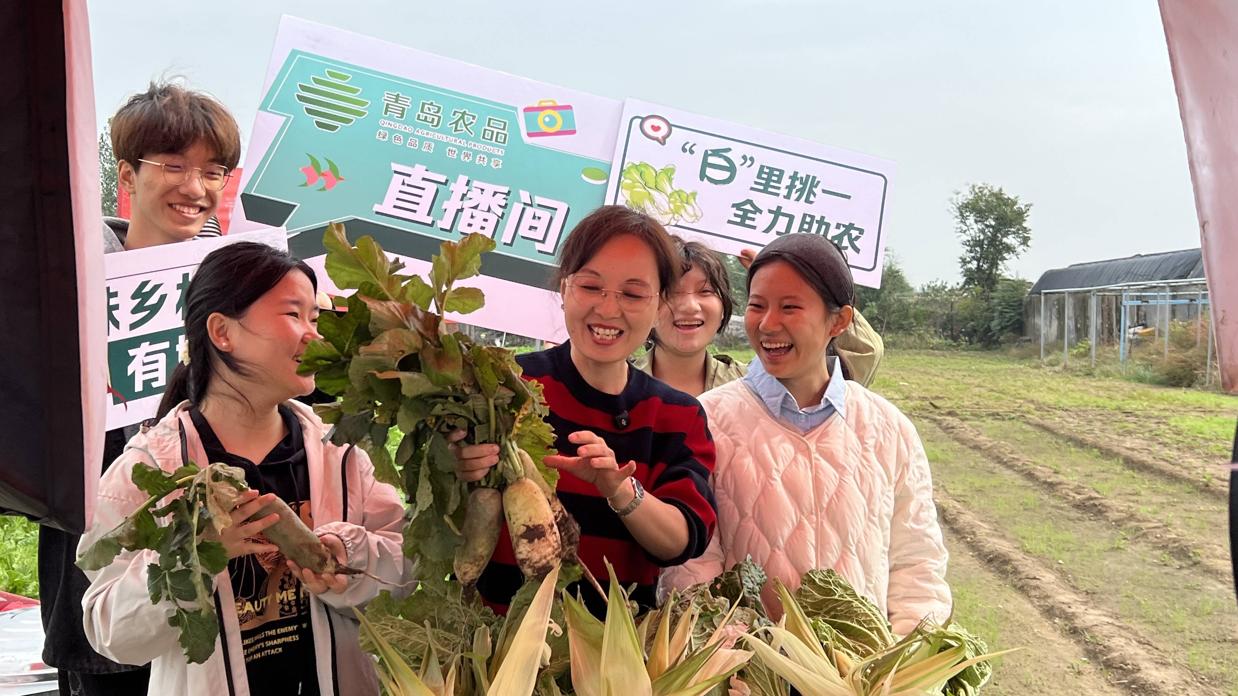 10月16日至18日,商务管理系“赵老师和同学们”助农直播团受邀走进青岛胶州九龙山有机农场,开展助农直播活动。尽管活动期间遭遇降雨和气温骤降,师生们依然热情不减。他们深入田间地头,不仅精心策划了“产地溯源+产品展示+故事赋能”三位一体的直播框架,还实地拍摄制作系列短视频,全方位推介农场的红心火龙果、白糯玉米、石磨面粉、黄金香妃苹果、粉条等优质农特产品。