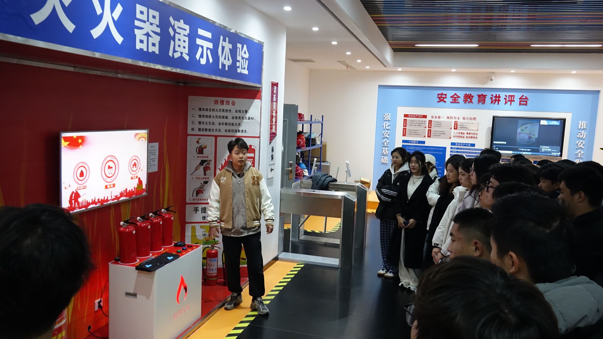 活动中,专业急救人员现场讲解示范心肺复苏(CPR)、创伤止血包扎等核心技能,同学们积极互动练习,切实提升应急处突能力;在安全基地实训场馆,大家通过VR模拟体验、实物陈列、互动演示等多元形式直观感受违规操作风险,并在生产安全实操区学习安全防护设备使用、设备巡检及隐患排查要点,深刻领悟“安全无小事,细节定成败”的内涵,现场学习氛围浓厚。
