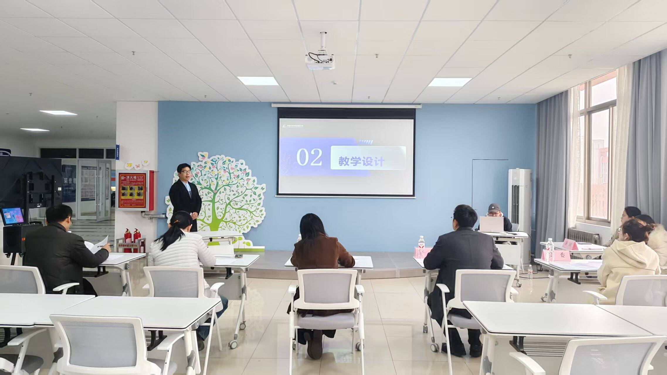 选拔赛现场环节紧凑、内容丰富。比赛设置课程建设情况汇报、教学展示及互动答辩三个环节。在课程建设汇报环节,参赛教师围绕课程创新探索、实施过程及成效展开详细阐述;教学展示环节采用无生授课模式,选手灵活运用情景教学、案例分析、小组研讨等多元化教学方法,结合多媒体课件与职业测评工具,生动呈现课堂教学实况;互动答辩环节,评审专家针对课程建设水平、特色创新效果等核心问题提问,全面考查参赛教师的专业能力与应变能力。