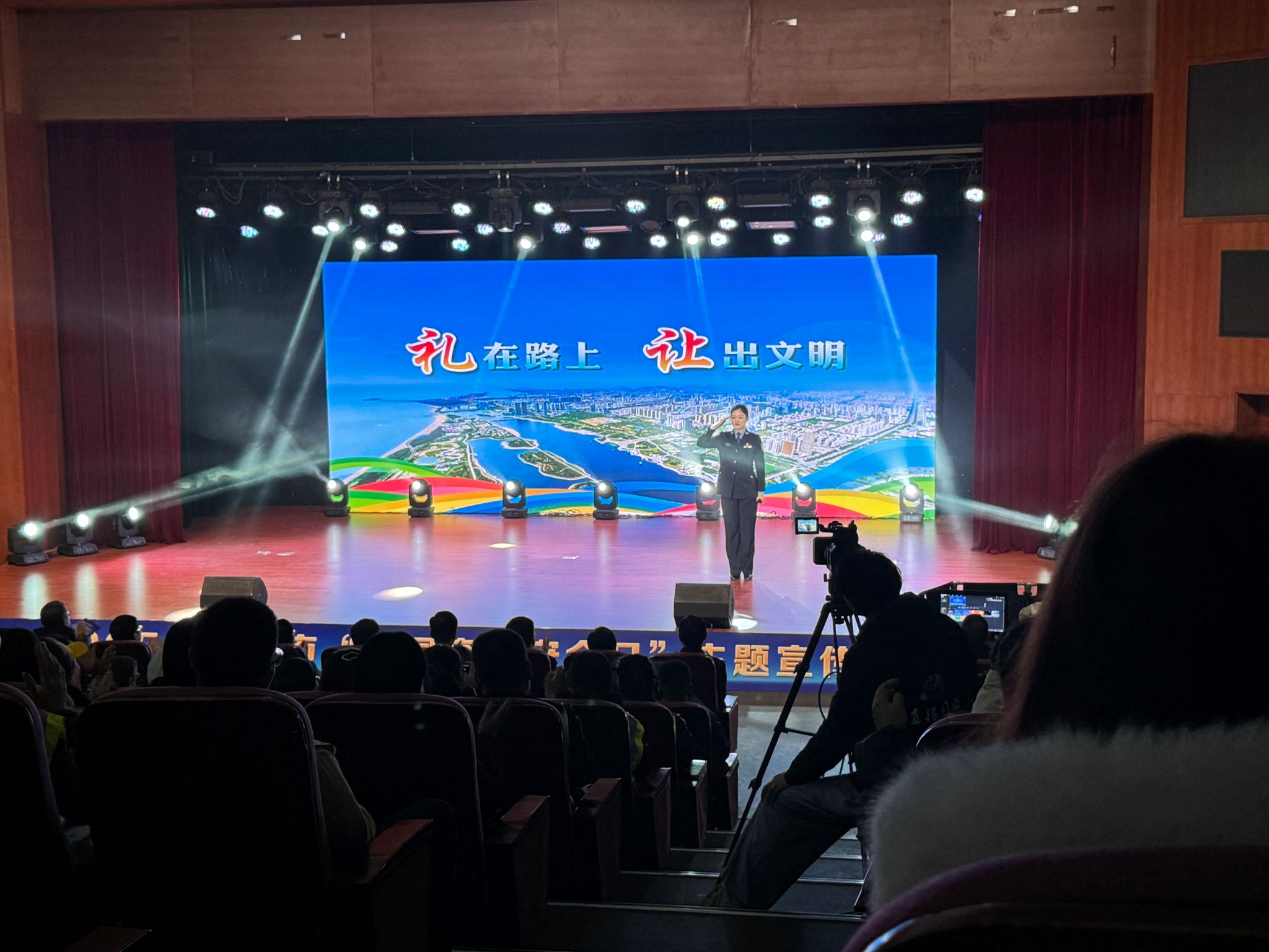 赋能社会宣传,厚植安全理念。受日照市阳光助残志愿者协会邀请,水利工程系选派40 名青年志愿者,于11月28日上午赴日照图书馆报告厅,全程参与2025年日照市“全国交通安全日”主题宣传活动。本次活动由日照市公安局交管支队直属大队统筹组织、全程保障,志愿者们通过观看主题文艺演出、聆听交通安全宣讲等形式,深入学习交通安全法律法规,深刻领会文明出行的重要意义,进一步强化了社会责任感与志愿服务使命感,为后续参与交通安全宣传工作积累了宝贵经验。
