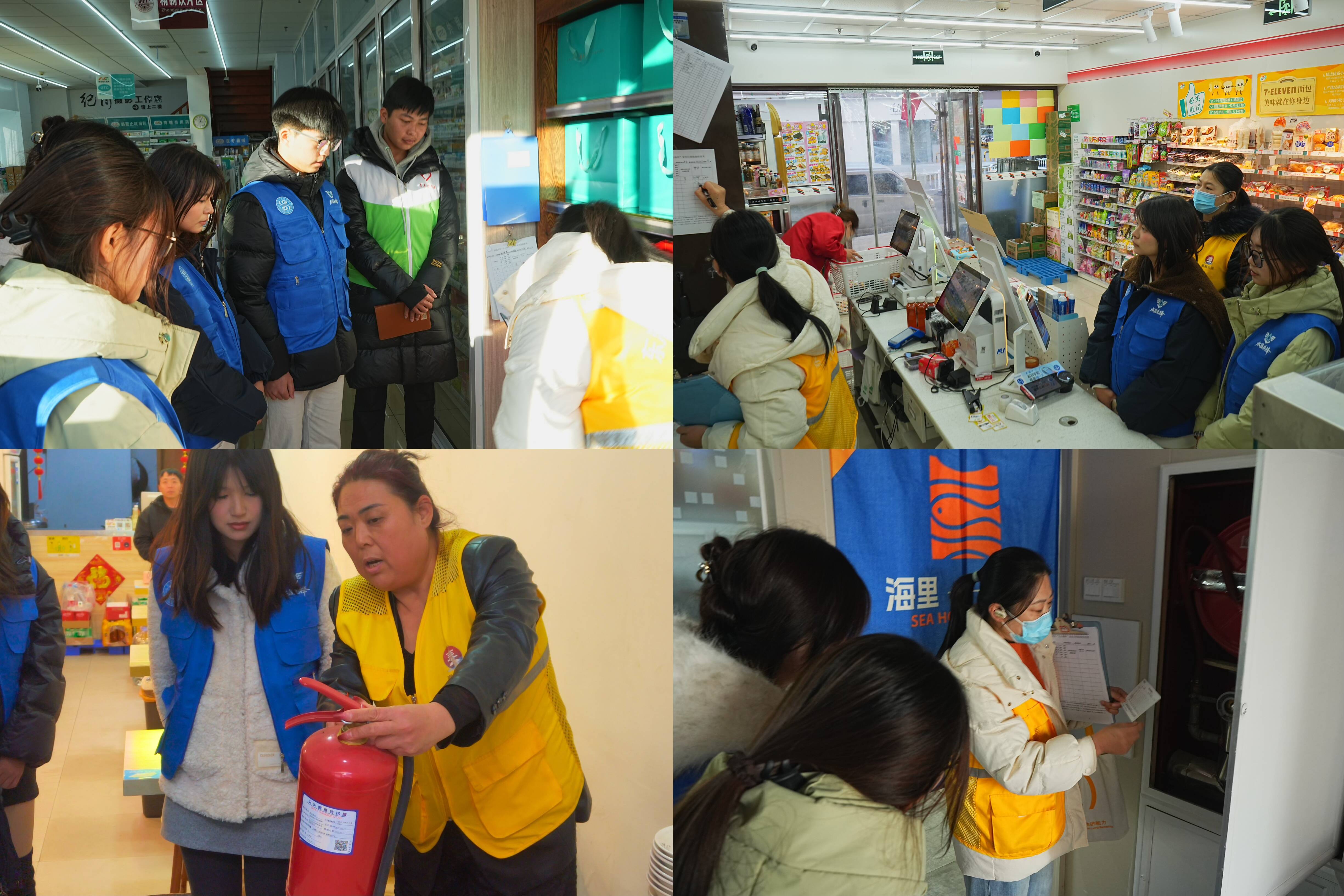 宣讲结束后,志愿者分组深入沿街商户,协助开展“地毯式”安全排查,重点检查电路铺设规范、消防器材配备及有效期等情况,对私拉乱接电线、消防通道堵塞等安全隐患现场登记,手把手指导商户立行立改。同时,志愿者向商户和居民发放安全生产宣传手册,普及《中华人民共和国安全生产法》核心条款,明确商户安全生产责任,强化大家的法治安全意识。