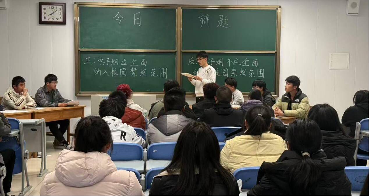 以辩明思,共护健康校园。“无烟校园,清新同行”禁烟辩论赛火热开赛,正反双方围绕烟草危害、校园控烟的必要性等议题展开激烈交锋。犀利的言辞、缜密的逻辑不断碰撞出思维火花,有效破除了部分同学对控烟的认知误区,凝聚起“共建无烟校园、共享健康环境”的共识,为营造文明健康的校园生态注入正能量。