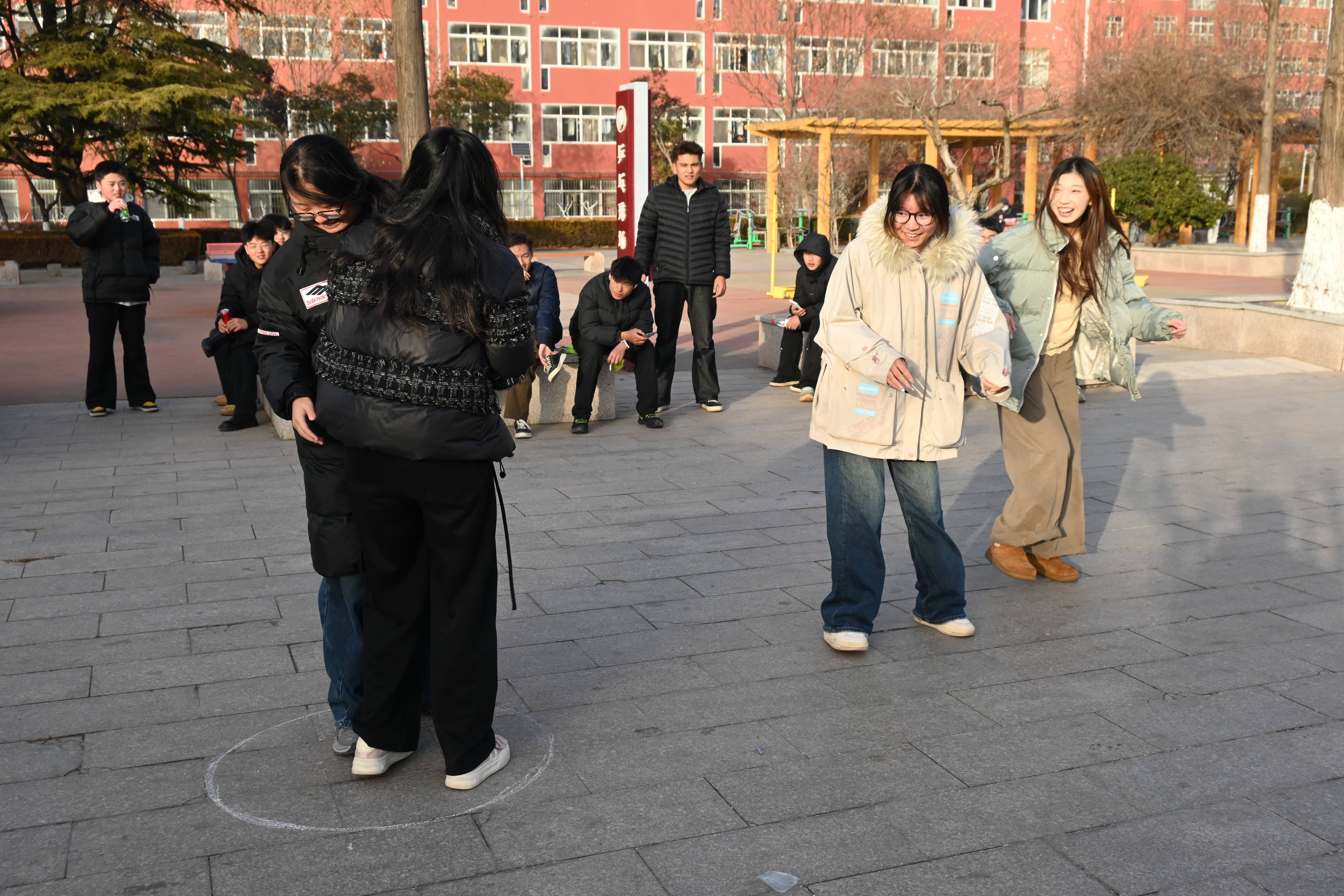 活动设置两人三足竞速赛、趣味投壶挑战、踩气球大作战、缩小圈子大挑战四大趣味竞技环节,各有侧重又各具乐趣。同学们在互动中打破隔阂,感受团队协作的力量,消除备考压力。对在活动中表现突出的同学,现场颁发中性笔、笔记本等文具作为奖励,以此肯定大家的参与热情,也为期末复习提供贴心助力。