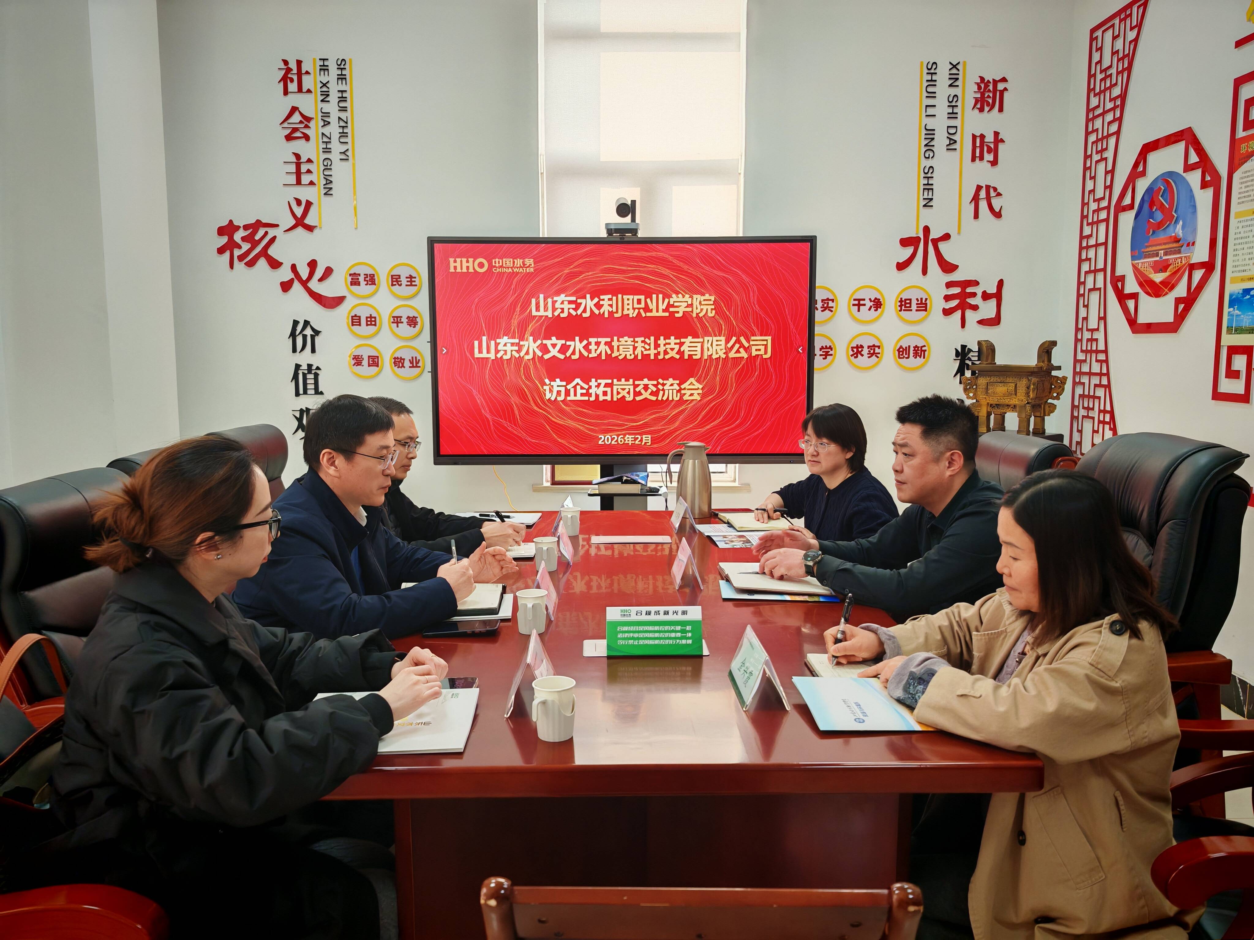 调研过程中,各企业负责人分别介绍了公司的业务布局、未来发展规划及行业发展前景,围绕岗位设置、招聘方式、技能要求、职业发展等核心内容,阐述了企业的用人标准与人才培养期望。资源与环境系带队负责同志介绍了本系的专业特色、师资队伍优势及在环境监测、智能水务管理等领域的人才培养成果。校企双方还围绕人才共育、实习实训基地建设、联合开展技术攻关等议题展开深入交流,并就后续深化合作达成初步意向。