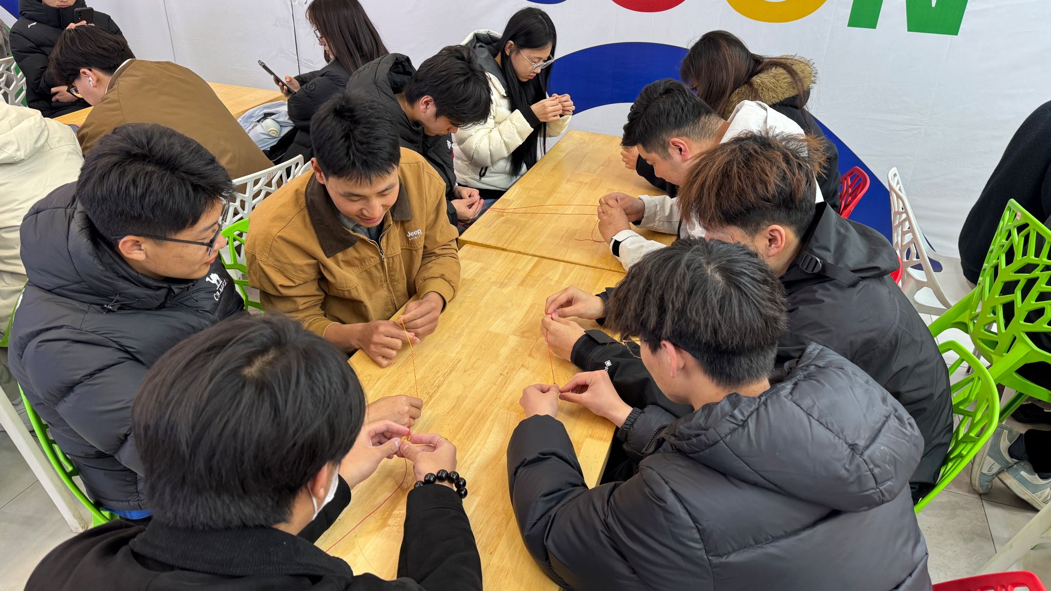 祥龙佩福·红绳纳吉。同学们亲手编制象征平安吉祥的红色手绳,在丝线缠绕间体悟传统手工艺的温度。大家纷纷表示,这不仅是简单的装饰品,更承载着对美好生活的期盼与祝福,在动手实践的过程中,也对传统文化有了更深的敬意。