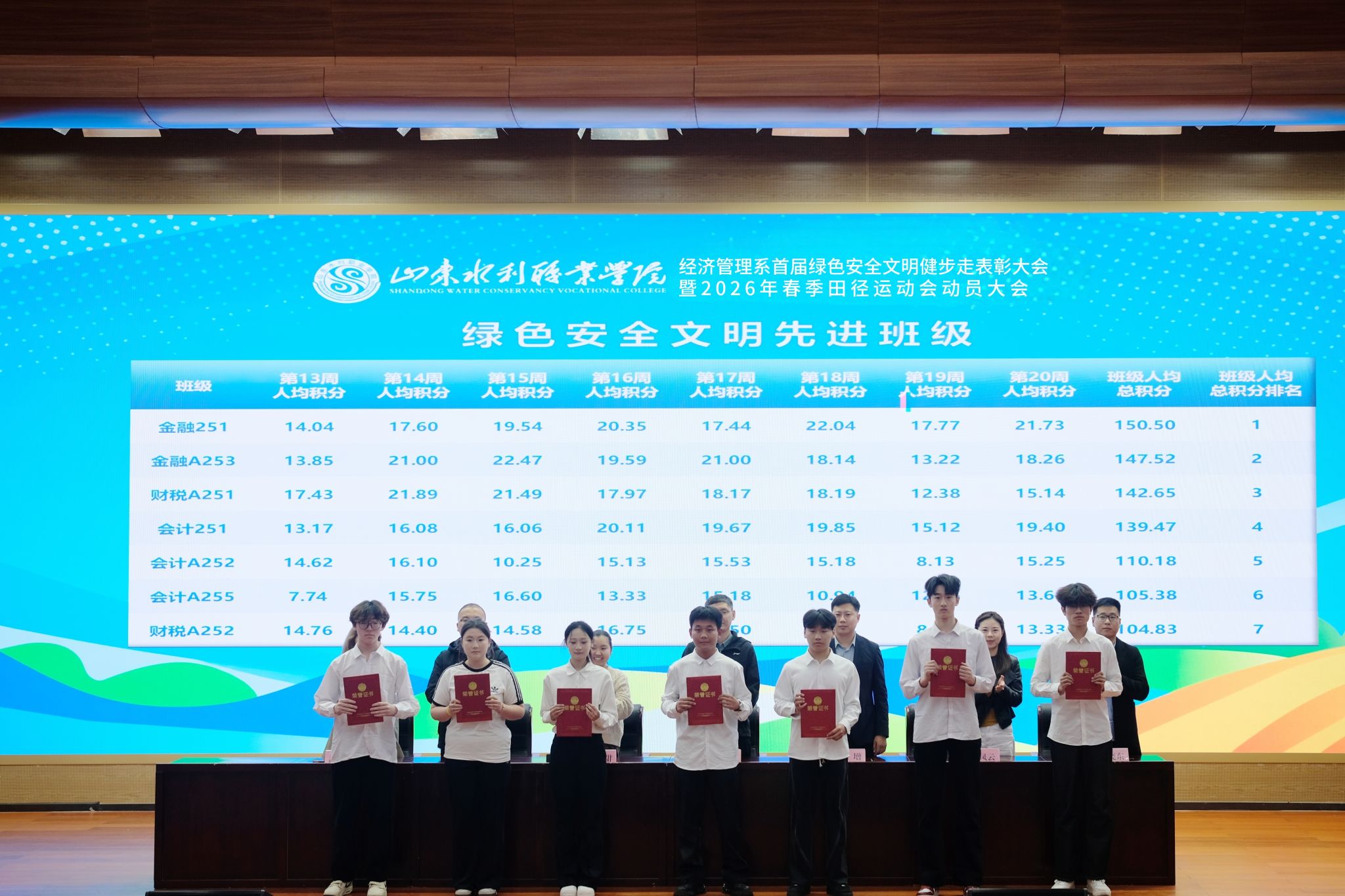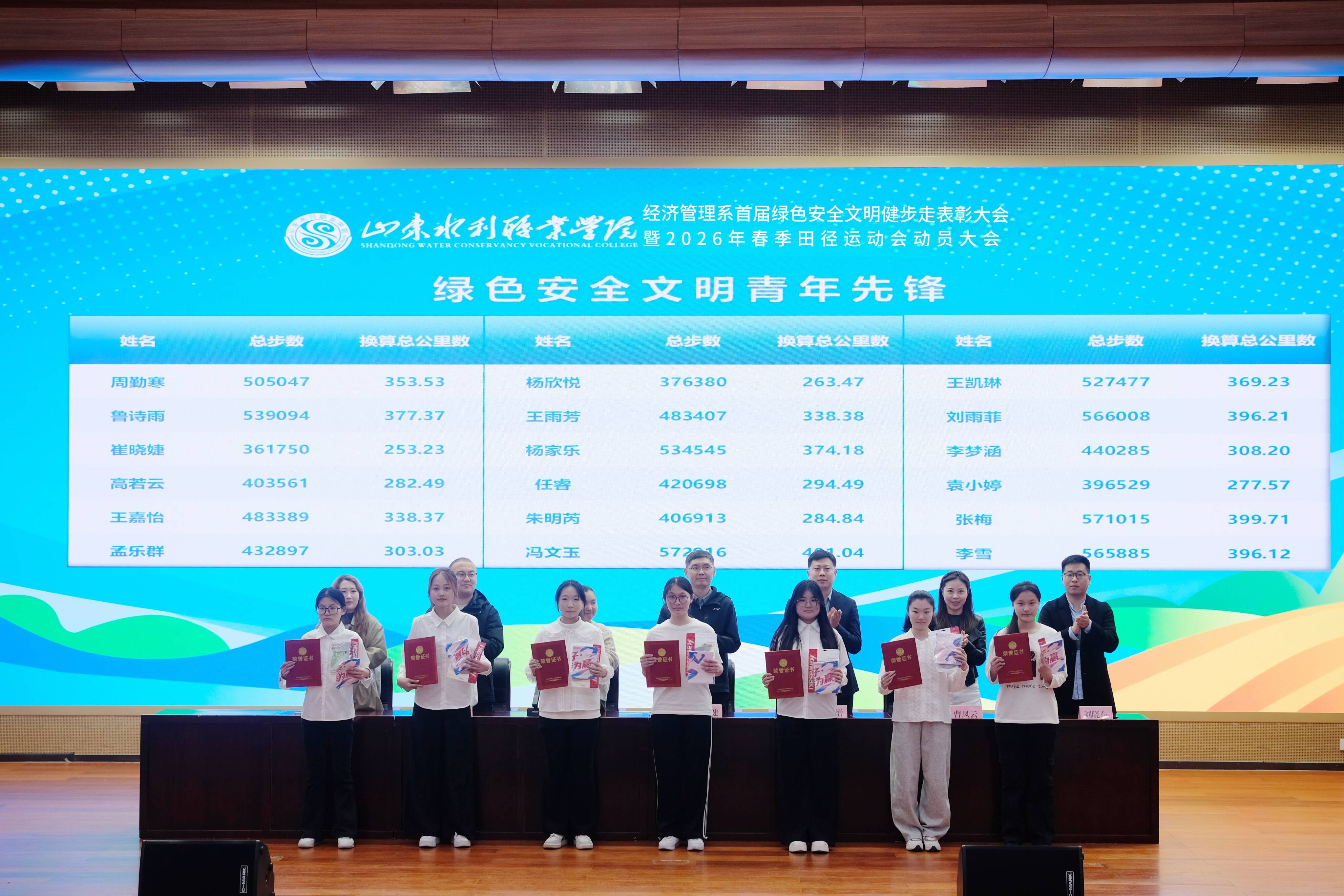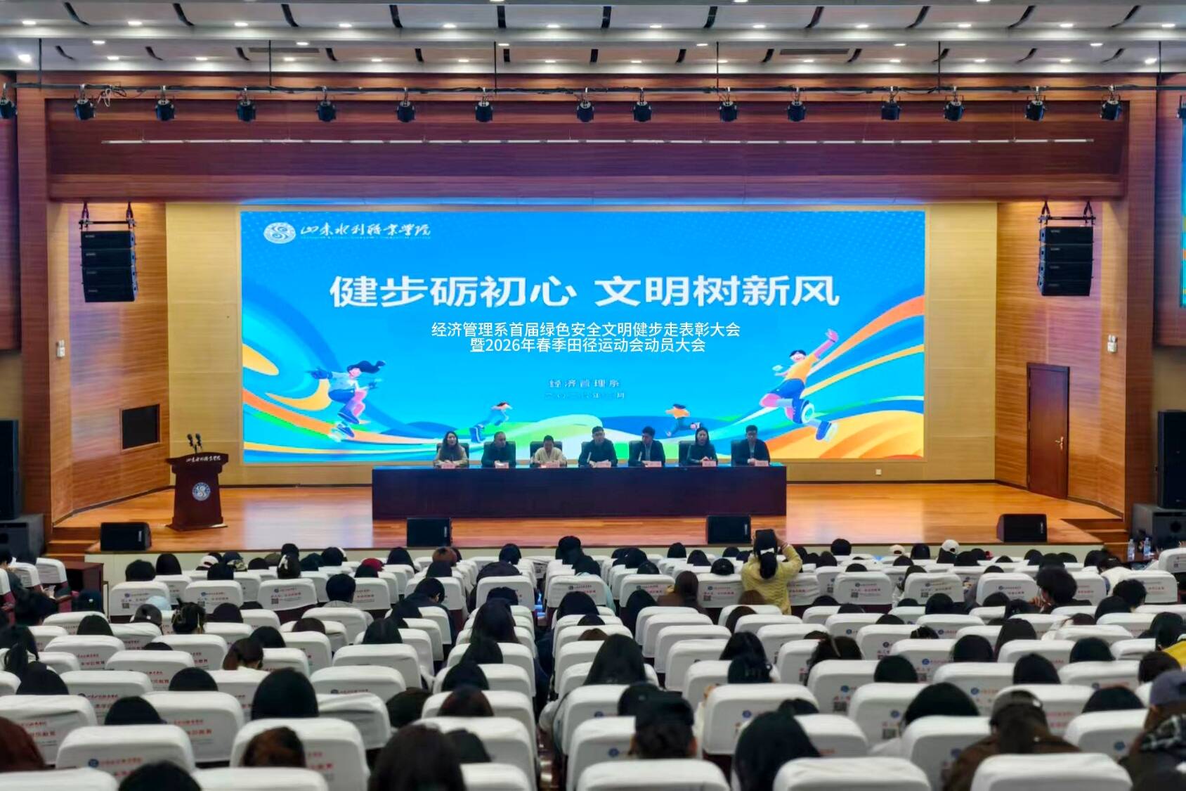 3月26日,经济管理系举办首届绿色安全文明健步走表彰大会暨2026年春季田径运动会动员大会。系党总支书记王健及师生代表等600余人参加。