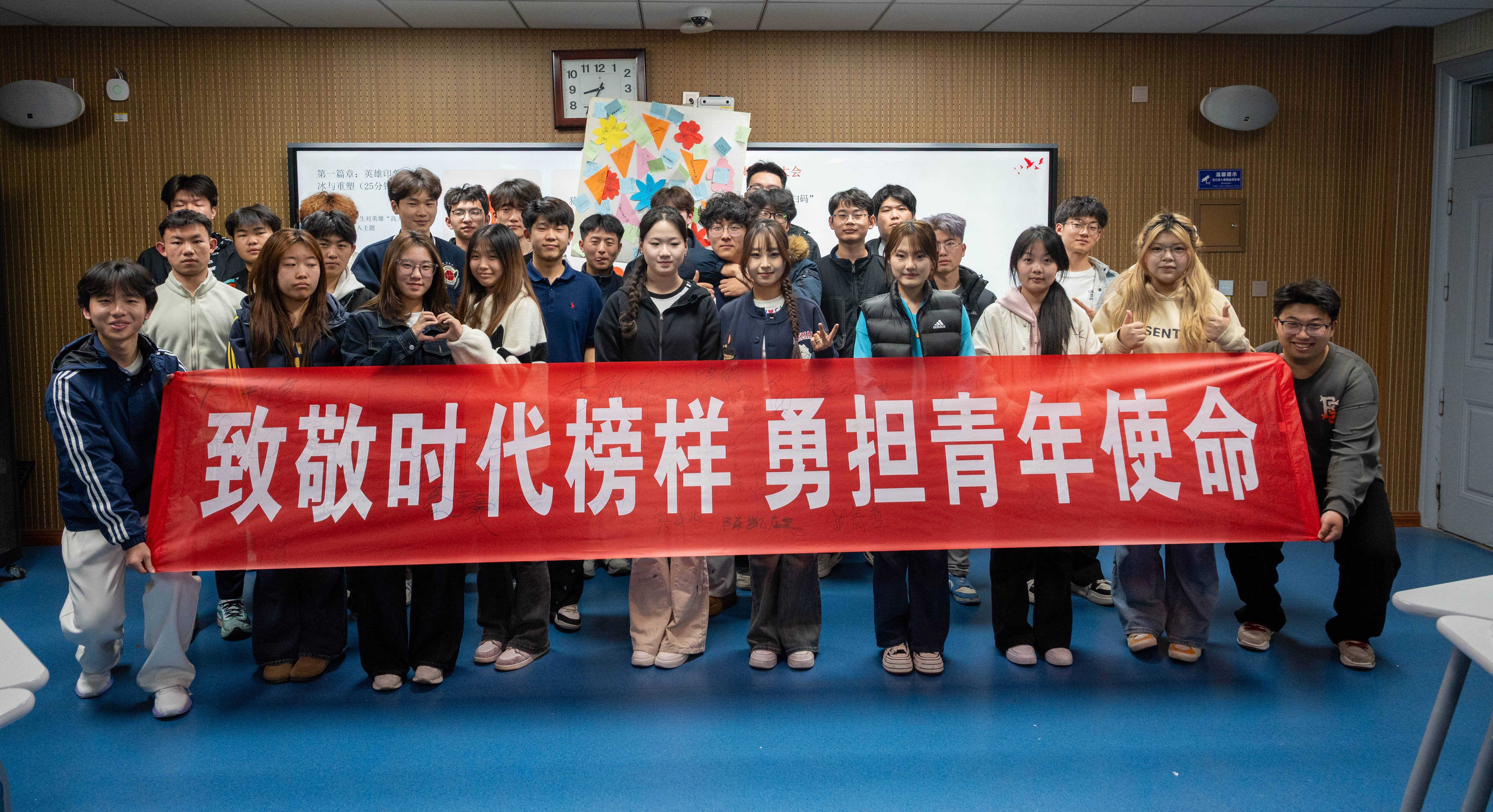 此外,同学们还结合专业学习、技能提升、志愿服务等方面,认真书写“榜样行动卡”,立下未来一个月的实践承诺。随后,大家将行动卡张贴于“榜样墙”并进行集体宣誓。“以榜样为镜,向优秀看齐;练过硬技能,守初心本心”的铿锵誓言,彰显着同学们以榜样为标杆、勇担时代使命的坚定决心。