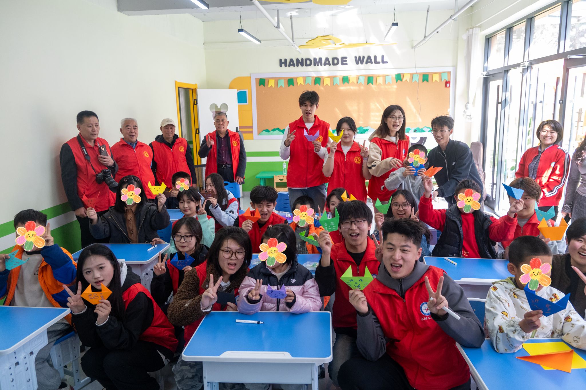 随后,志愿者们前往日照市东港区爱贝学校,开展爱心志愿服务活动,以实际行动传递水利学子的温暖与青春担当。志愿者们结合水利专业特色,将专业内容转化为通俗易懂的语言和趣味鲜活的案例,为孩子们带来一场生动的节水护水主题宣讲,引导孩子们从小树立珍惜水资源、保护水生态的环保意识,让水利情怀如涓涓细流,浸润每一颗童心。