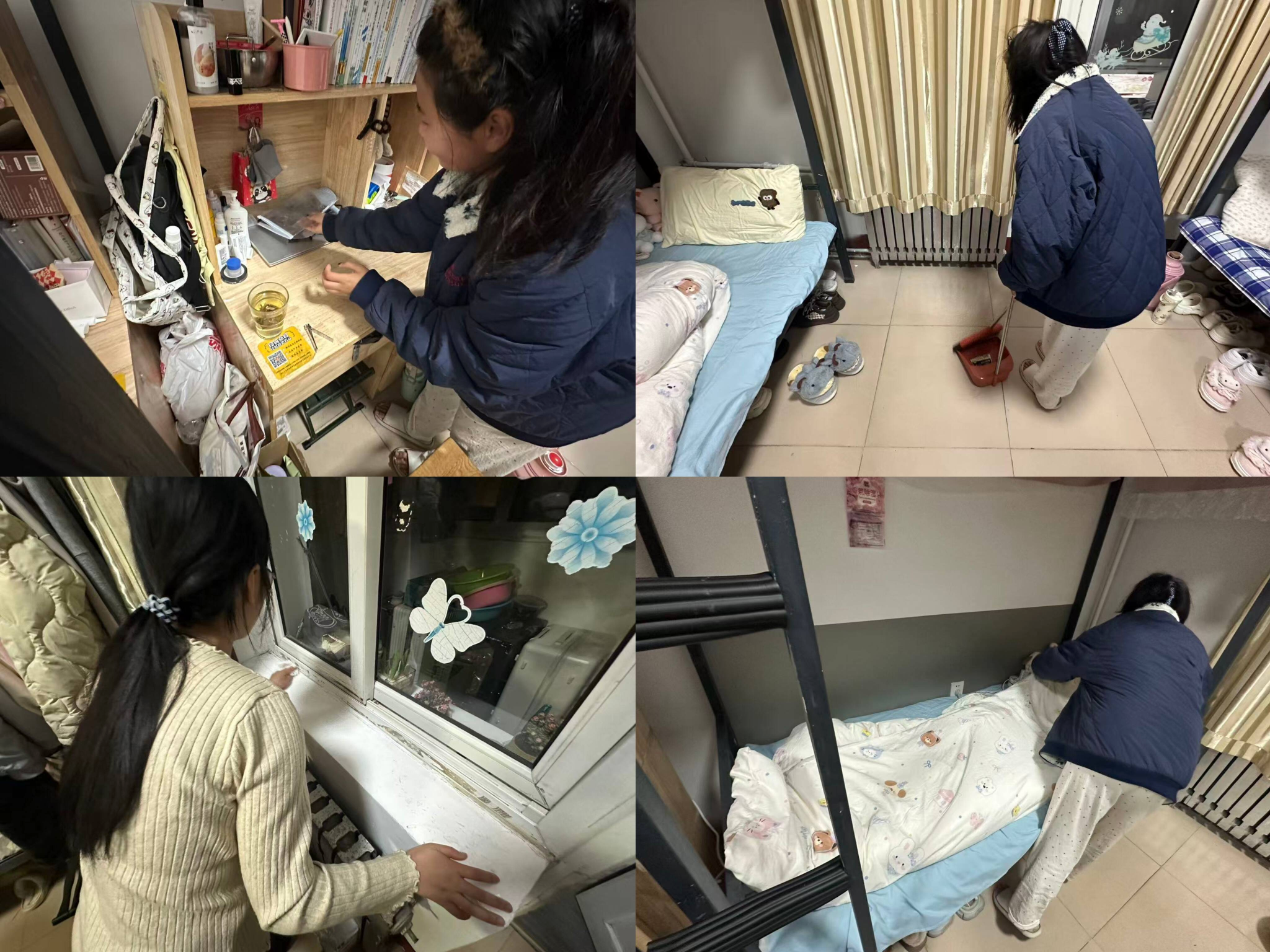 按照主题班会布置要求,全系学生迅速开展宿舍内务自查自纠行动,聚焦物品摆放、床铺整理、桌面清洁、卫生死角等关键部位,逐项排查、立行立改。同学们分工协作,认真清理卫生、规整物品、优化布局,全面消除安全隐患,实现宿舍“物品摆放有序、床铺整洁规范、环境干净清爽”。此次行动不仅有效改善了学生住宿环境,更锤炼了学生自我管理、自我服务、自我教育的能力,推动“一站式”学生社区自治管理走深走实。