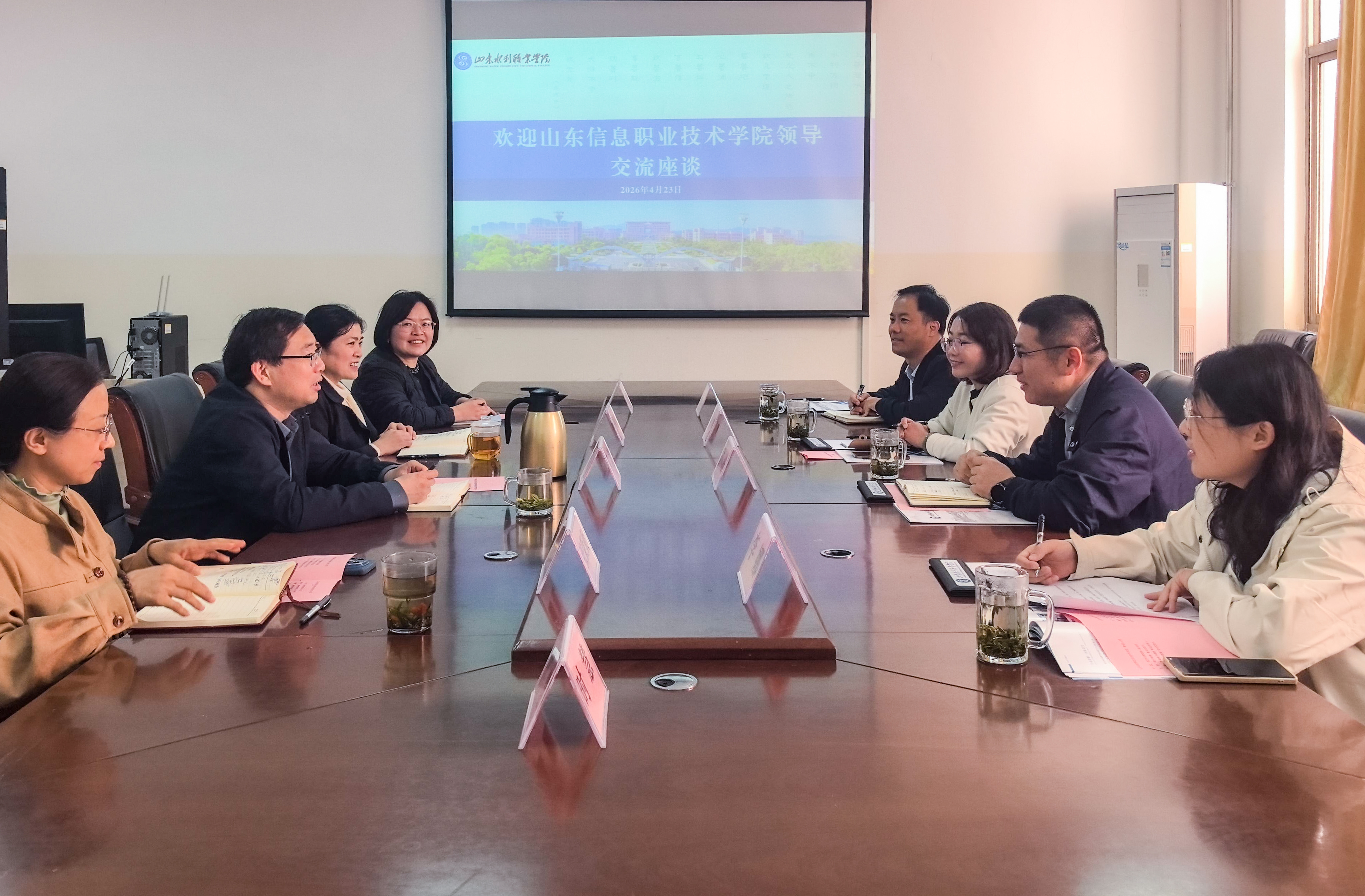 4月23日,山东信息职业技术学院经济与管理系副主任尹波一行4人到校,就专业建设、产教融合及国际化发展等议题进行深入交流。学院商务管理系主任马斌及相关专业教师参加座谈。