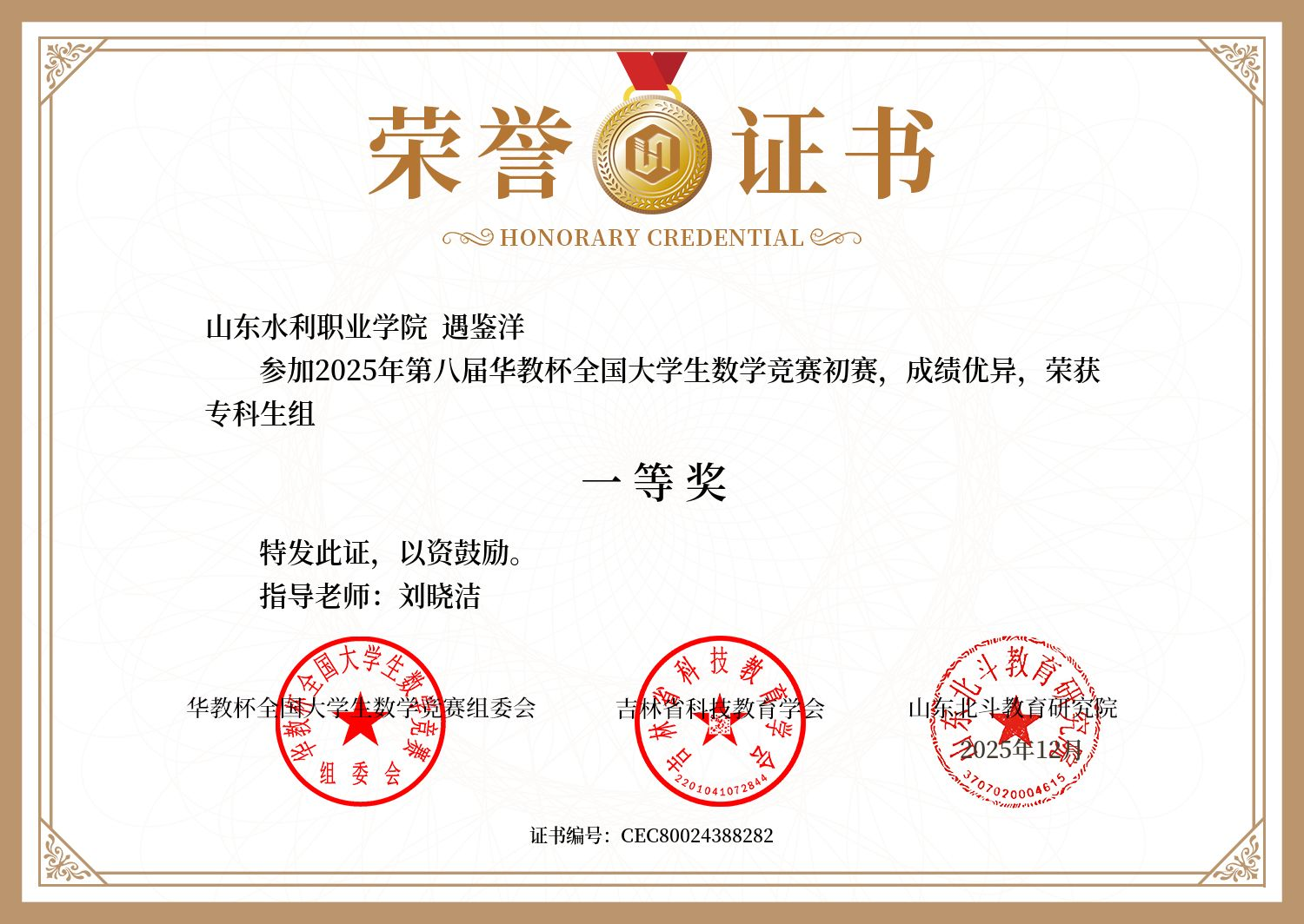 近年来,我院持续推进数学教学改革,优化课程体系,组建竞赛指导团队,开展专题培训,为学生提供系统化、专业化的竞赛指导。这些举措不仅提升了学生的数学素养和创新能力,也为他们在全国性竞赛中取得优异成绩奠定了坚实基础。