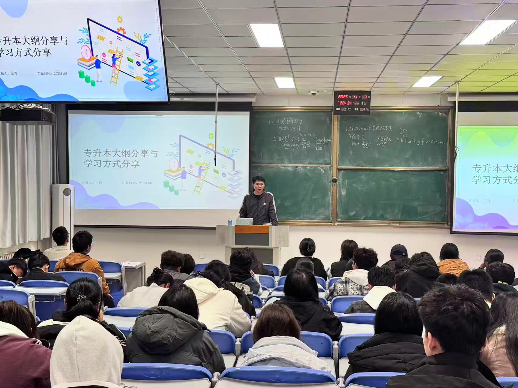 本次分享会以优秀学长学姐的经验分享为主线,围绕专升本备考的关键环节展开,内容涵盖数学与英语等公共课的学习技巧、专业课备考策略、学习时间规划以及志愿填报注意事项等方面。活动旨在通过经验传递,帮助学生掌握高效学习方法,科学规划备考进程,增强应试信心,同时为学院营造积极向上的专升本学习氛围树立典范。分享会特邀一位已成功通过专升本考试的学长进行经验交流。他结合自身备考经历,系统讲解了各科目的复习重点与应试策略,为在场同学提供了切实可行的学习建议。同学们认真聆听,积极互动,现场气氛热烈,活动各环节有序推进,取得了良好反响。参会学生普遍表示,通过此次分享会,进一步明确了备考方向,掌握了实用学习方法,对专升本考试充满信心。