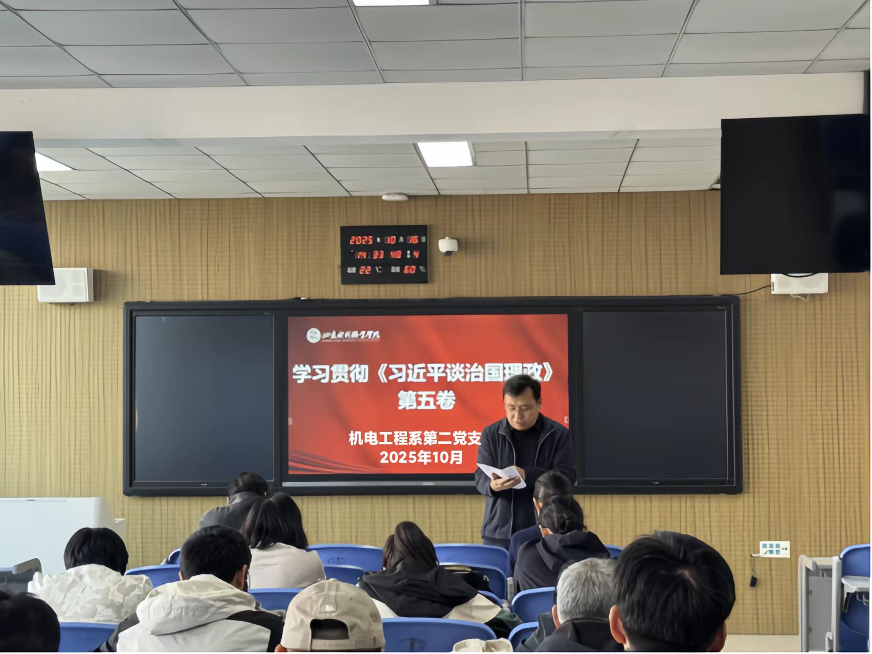 最后,支部书记对下一步学习贯彻工作作出了部署。他要求全体党员要持续深化理论学习,将《习近平谈治国理政》第五卷纳入 “三会一课” 和主题党日的长效学习内容,通过线上线下相结合的方式,确保学深悟透、入脑入心。同时,要将学习成果转化为实际行动,围绕机电工程系的中心工作,在教学改革、科研创新、产教融合等方面发挥党员的先锋模范作用,为系部的高质量发展和学校的 “十五五” 规划实施贡献基层党组织的力量。