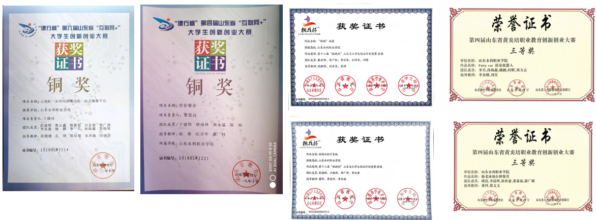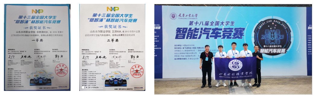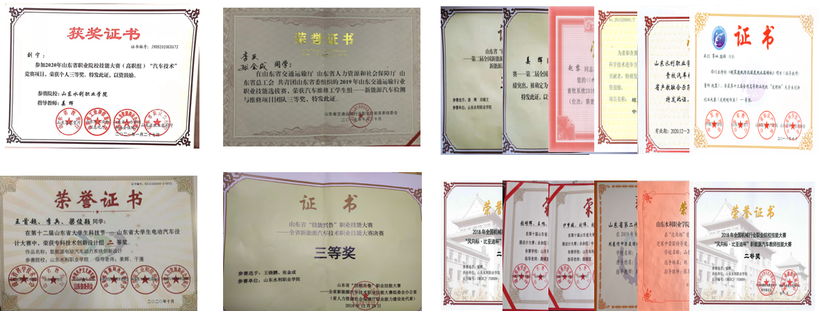 近几年,获得山东省职业技能大赛汽车技术赛项三等奖2项;连续三年获得全国大学生智能车竞赛国一等奖;获得山东省大学生机电产品创新设计竞赛获一等奖2项,二等奖3项;获得山东省“互联网+”大学生创新创业大赛一等奖2项,二等奖3项;获得山东省首届职业规划大赛银奖1项;获得第二届全国乡村振兴职业技能大赛山东省选拔赛农机修理赛项二等奖。