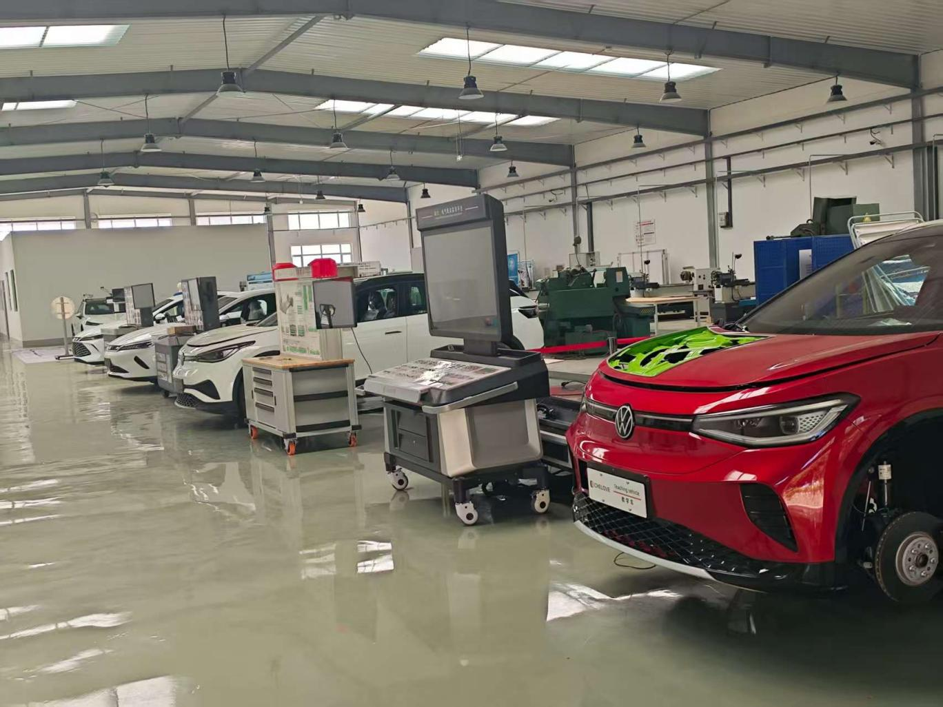 本专业建设了校内实训基地——融教学与服务于一体的“汽车检测与维修中心”,其中设有汽车拆装教学区、汽车发动机教学区、汽车底盘教学区、汽车电器电路教学区、汽车诊断与检测教学区、自动变速器教学区、学生学习讨论区、多媒体教学区、汽车检修服务区等。