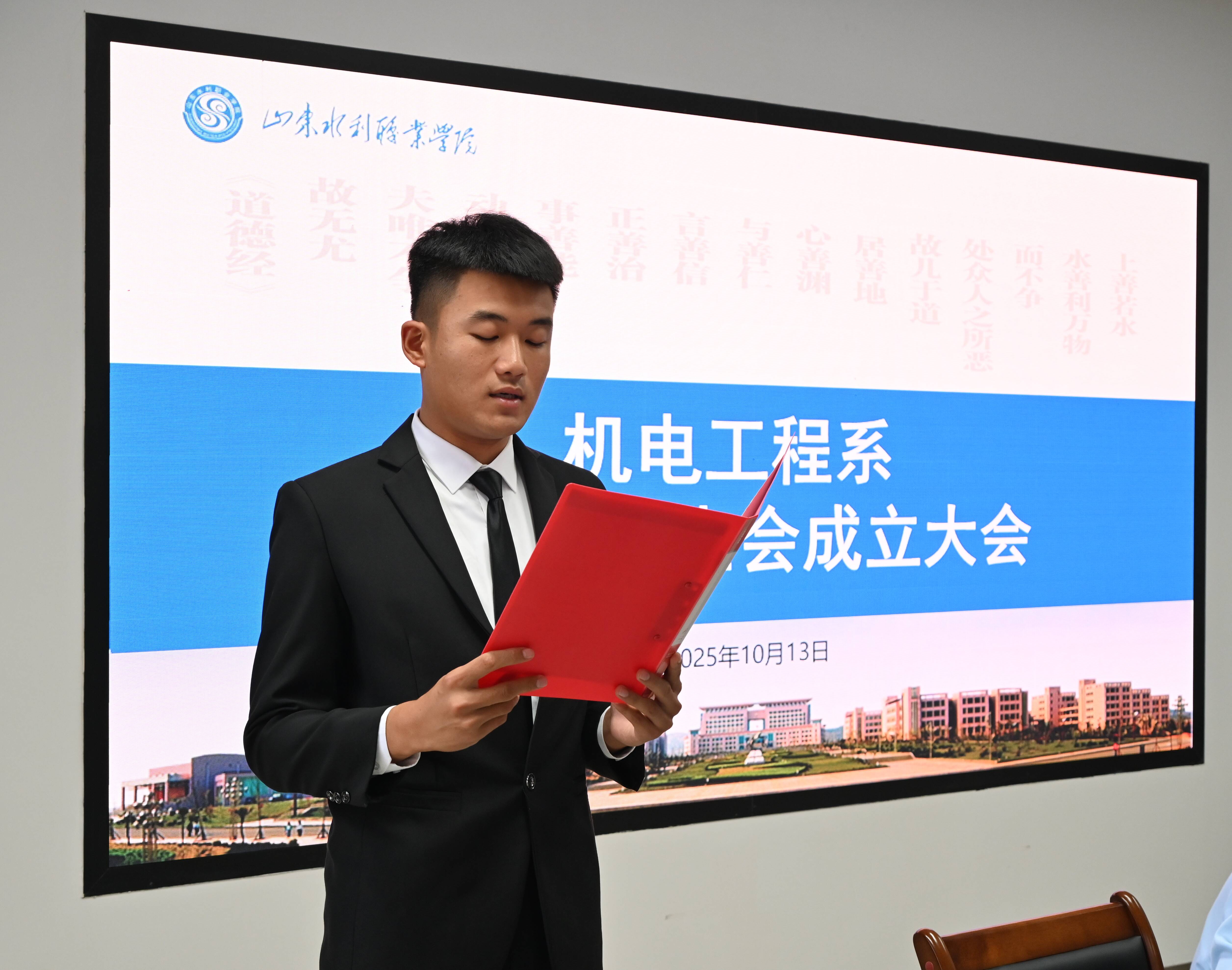 此次成立大会不仅是一次庄严宣告,更是一次深刻的团队凝聚与使命教育。机电工程系2025届学生会将围绕院系中心工作,服务育人大局,组织引领广大同学积极参与学风建设、校园文化等活动,以实际行动投身于学院内涵式高质量发展的进程之中,为培养高素质技术技能人才贡献青春力量。