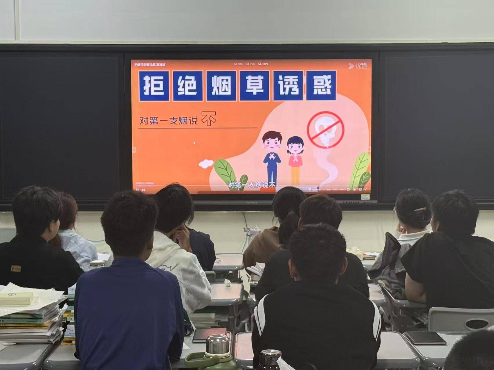 宣传视频强认知。各班组织学生集体观看禁烟宣传视频,视频以生动案例拆解烟草对呼吸系统、心血管系统的危害,同时科普二手烟对他人健康的影响,用直观画面传递“吸烟有害健康”的核心知识。观影后,班级学生进行了交流研讨,深刻认识到吸烟的危害性。