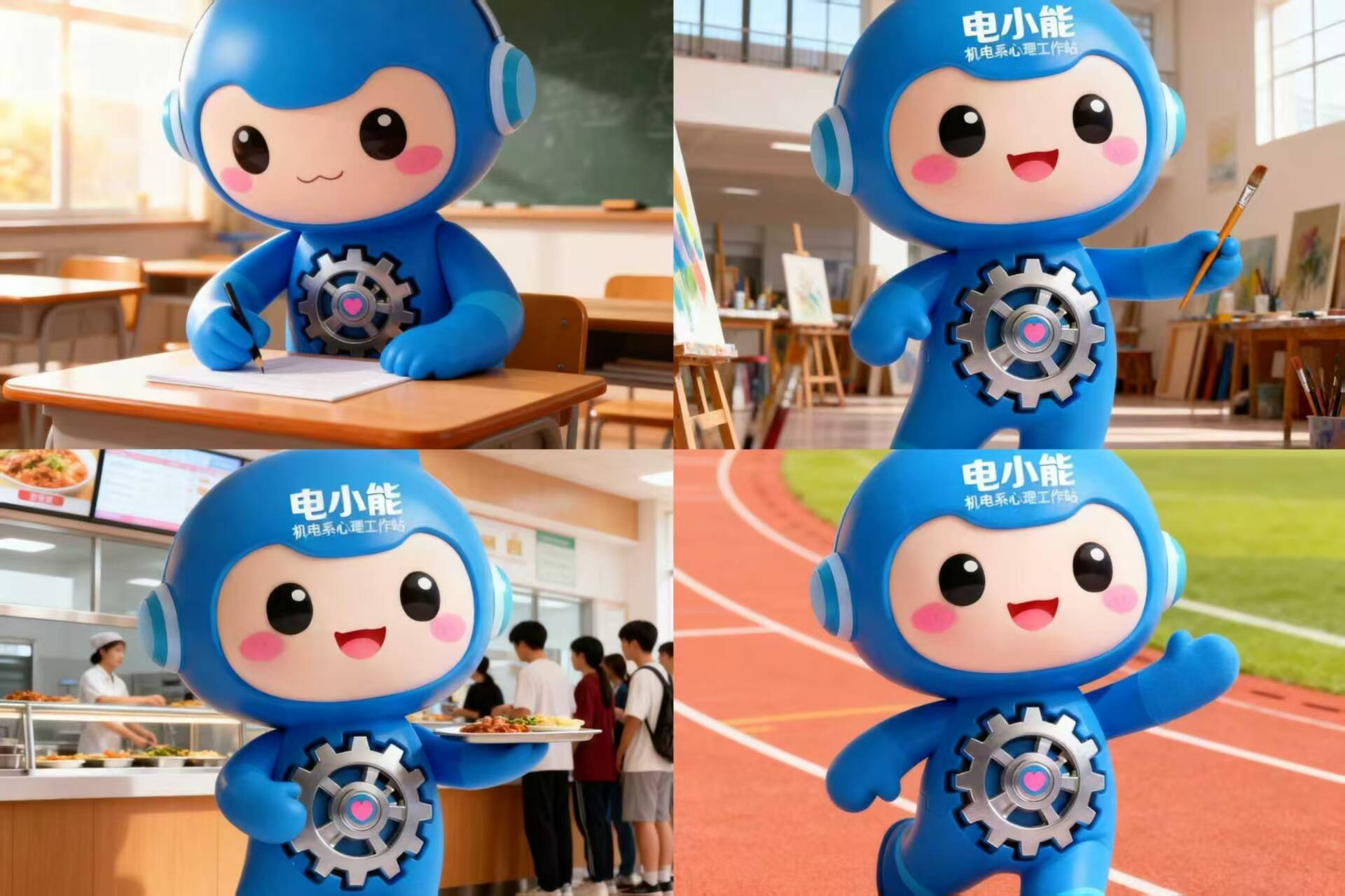开幕式前夕,系部学生充分运用AI工具创新实践,成功设计生成“机电心苑”专属形象IP——“电小能”。该IP以灵动可爱的造型传递积极心理理念,既展现了机电学子的科技素养与创意能力,也为“机电心苑”品牌注入鲜活活力,成为连接心理服务与学生群体的暖心符号。