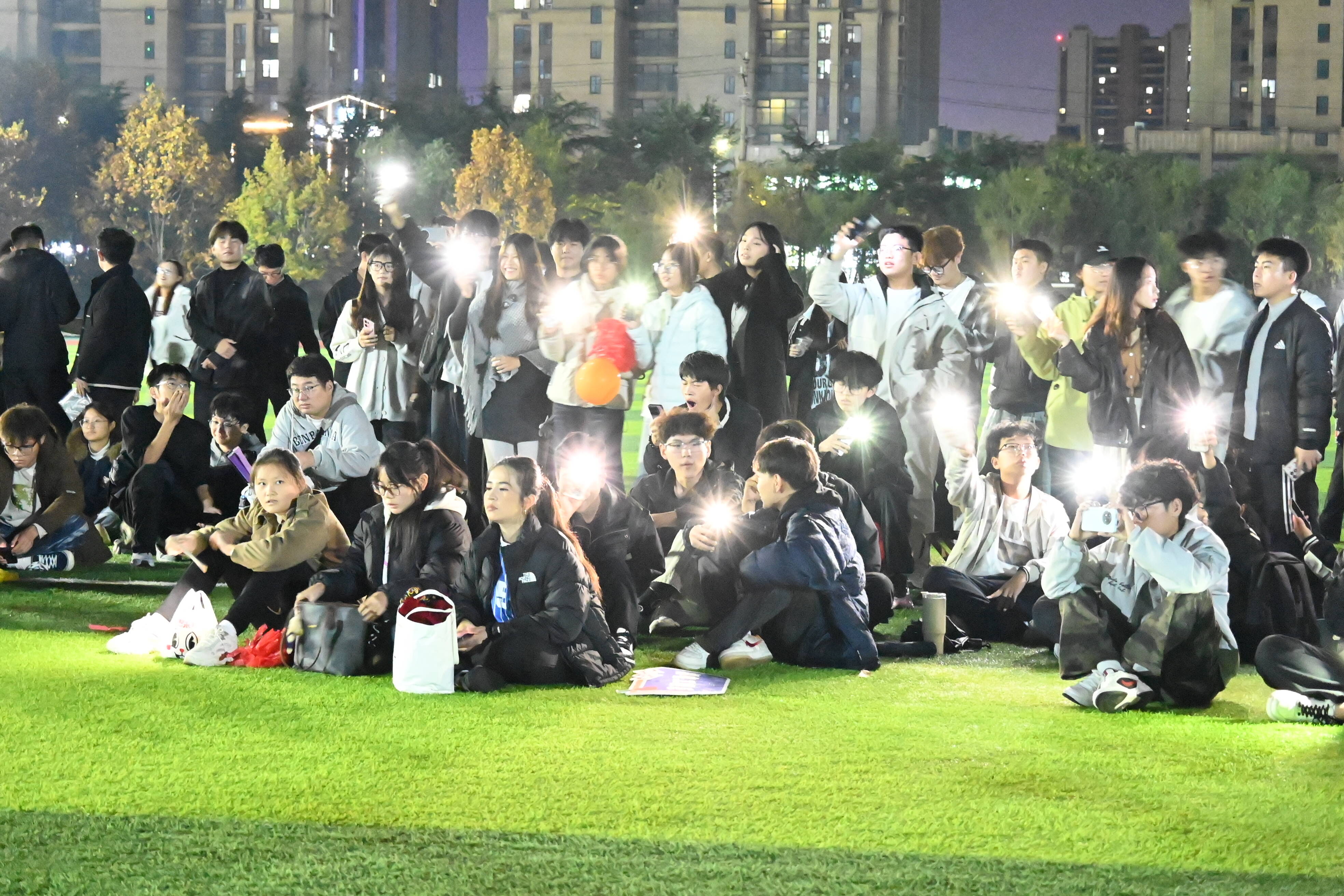 夜幕降临,全场师生齐声合唱《成都》,挥舞的灯光汇成一片温暖星海,展现出机电学子团结一心、积极向上的精神风貌。