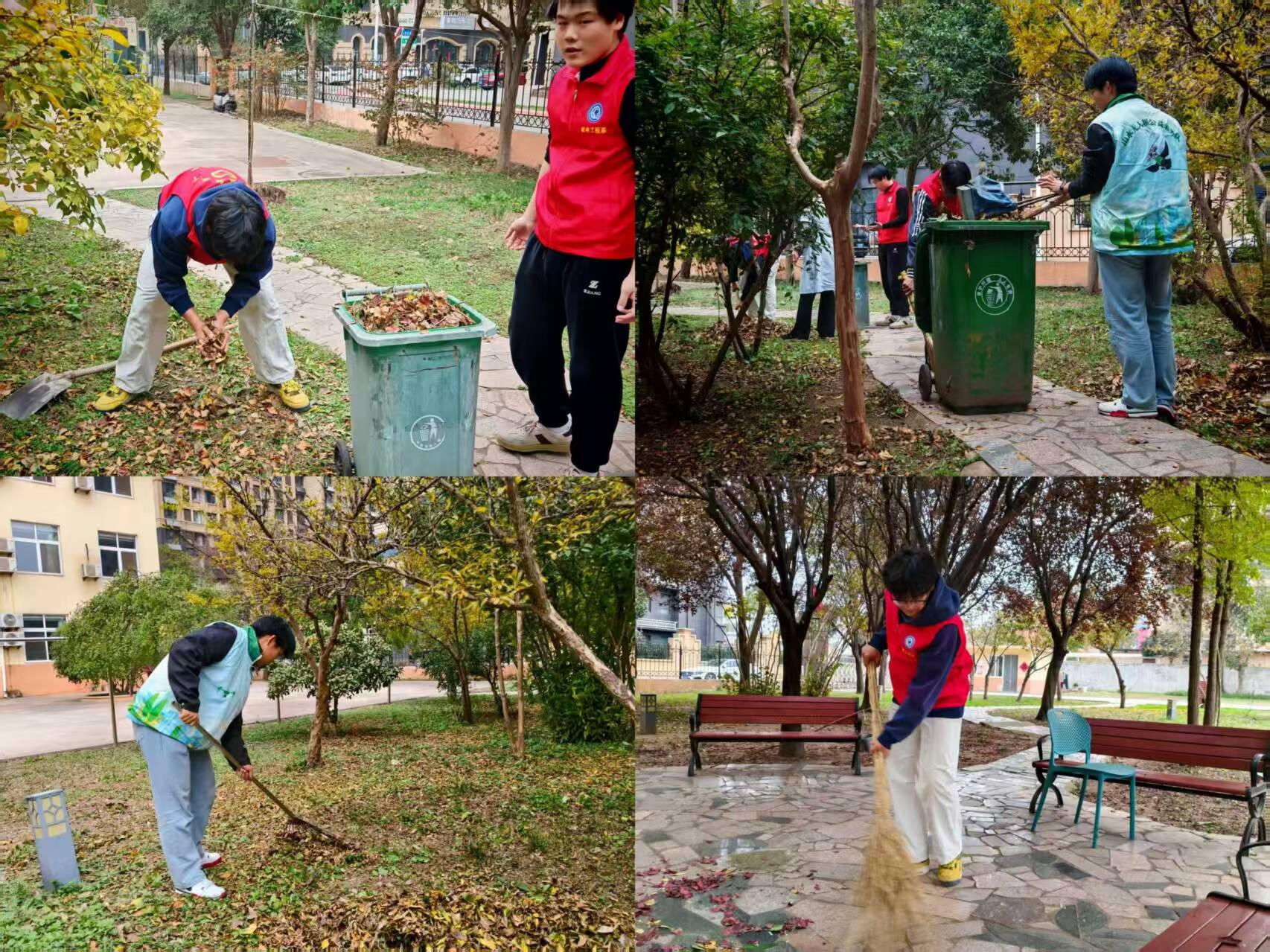 为给老人们营造一个干净、整洁、舒适的居住环境,学生拿起扫帚、簸箕等工具,主动承担起敬老院庭院的清扫工作。深秋时节,庭院内落叶堆积,学生分工合作,有的弯腰捡拾落叶,有的挥动扫帚清扫路面,有的将垃圾归拢清运。经过辛勤劳动,庭院内的落叶被清扫一空,整个养老院焕发出整洁的新面貌。