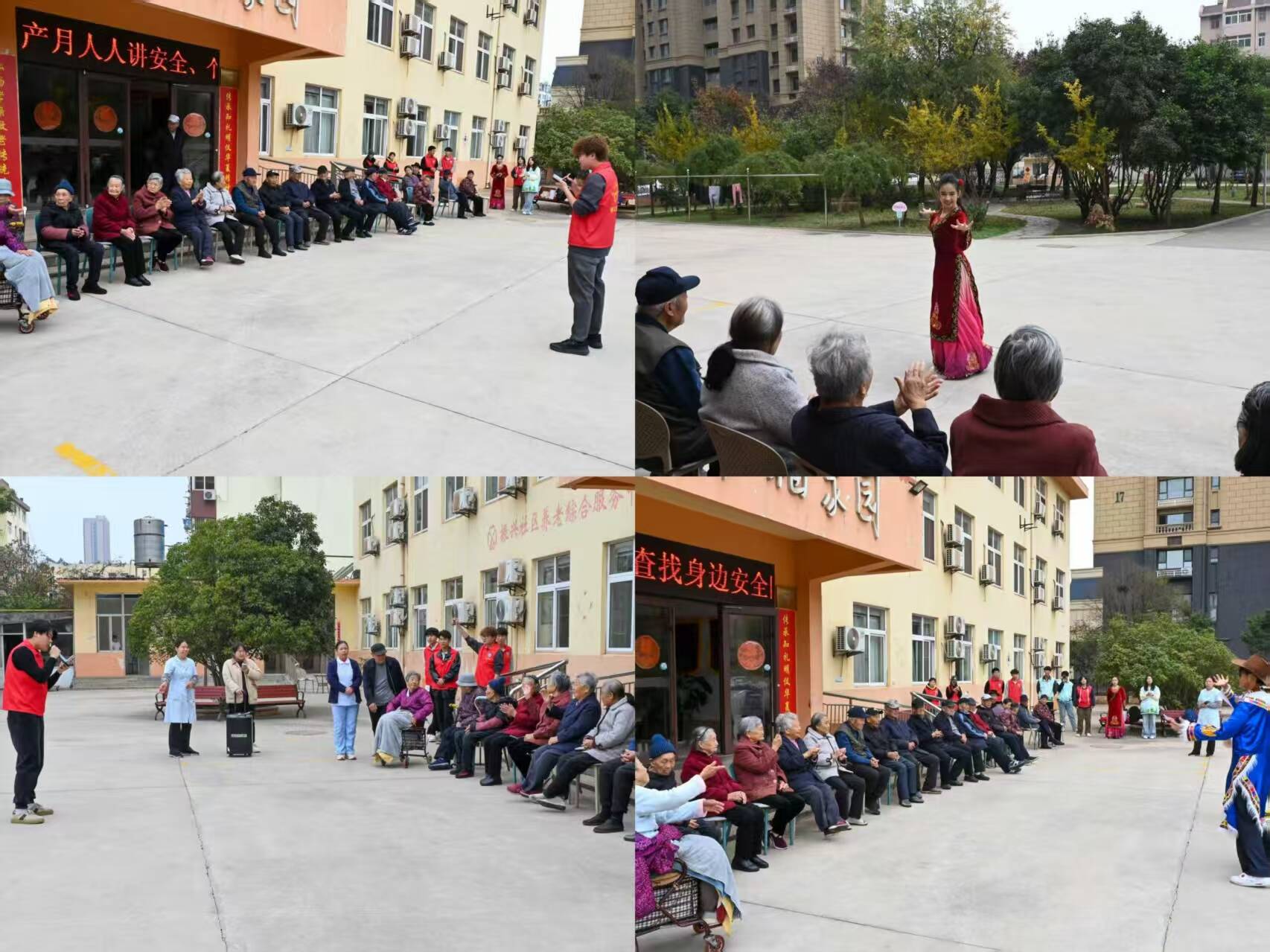 活动伊始,机电学子们化身多才多艺的 “表演者”,为老人们献上了一场精彩纷呈的才艺展示。一首首经典老歌轮番唱响,不少老人跟着轻声哼唱,眼神中满是怀念与笑意。几位擅长民族舞蹈的同学带来了活力四射的藏族舞和新疆舞,将现场气氛推向高潮,老人们不时报以热烈的掌声。